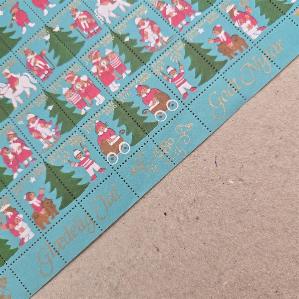 Dette smukke ark af julemærker fra 1980 er en ægte tidskapsel, der bringer en ægte klassisk julestemning direkte til din hoveddør.