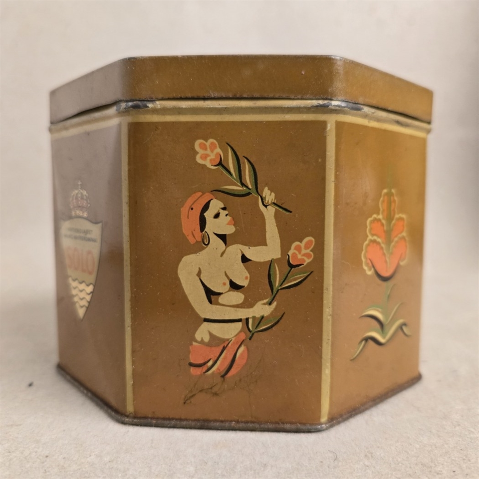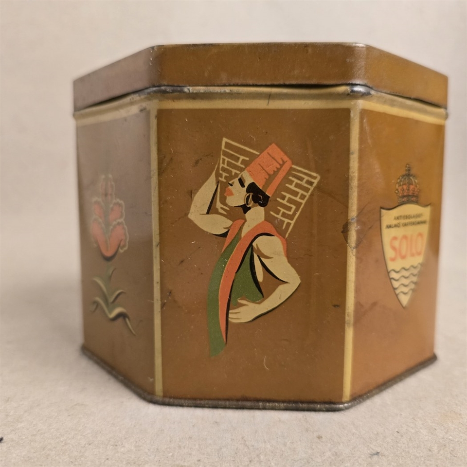 Giv dit køkken et strejf af vintage charme med denne unikke '8-kantet Solo kaffedåse fra Malmö'.