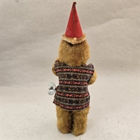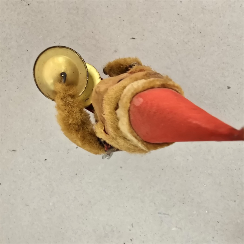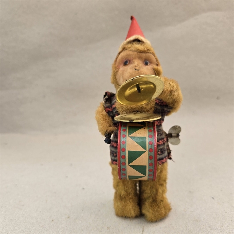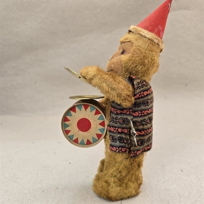 Denne elskelige, lysebrune abe, klædt i en klassisk ternet trøje, er ikke kun en fryd for øjet, men også en fryd for ørerne, når den begynder at spille på sin skinnende metaltromme.