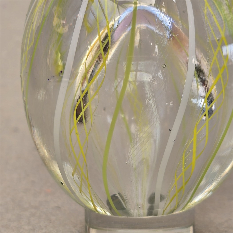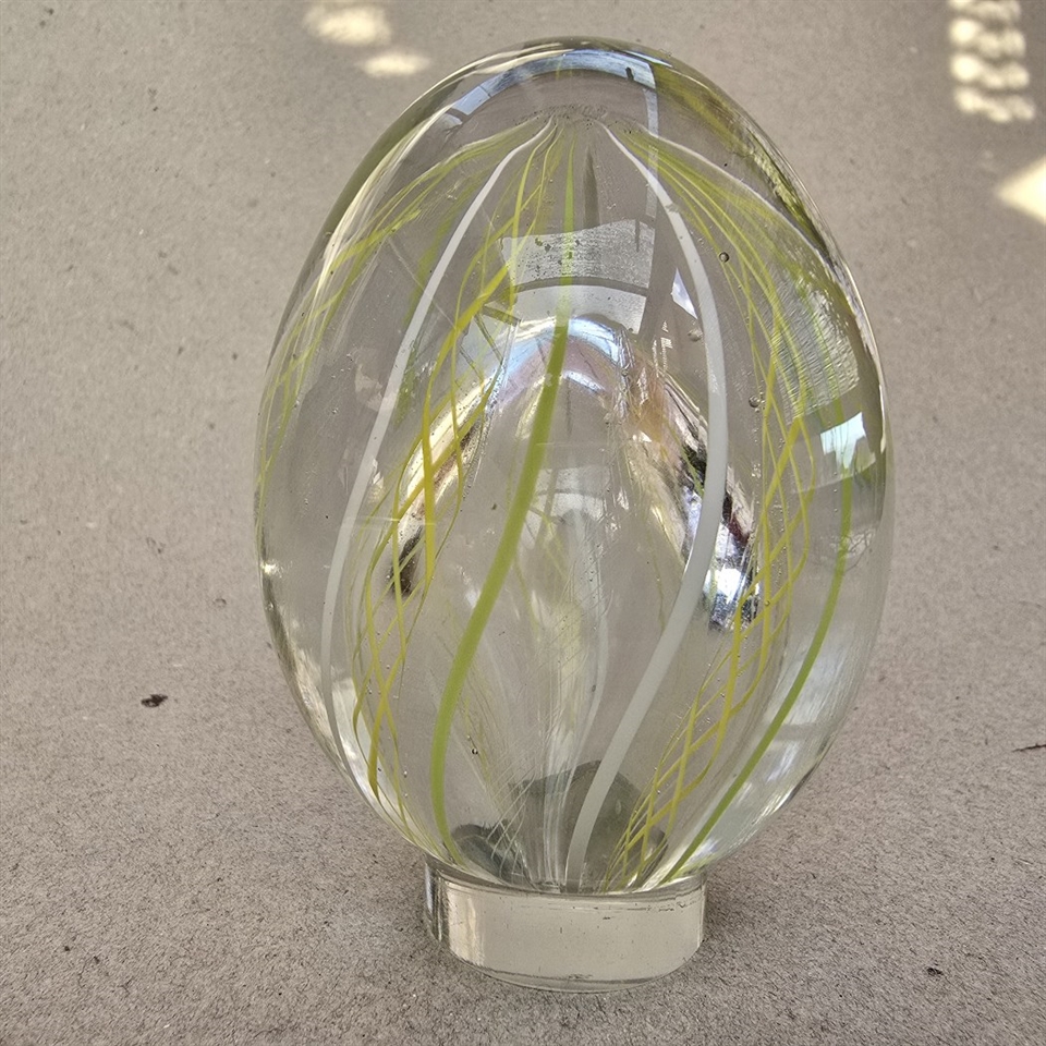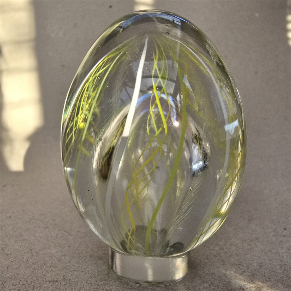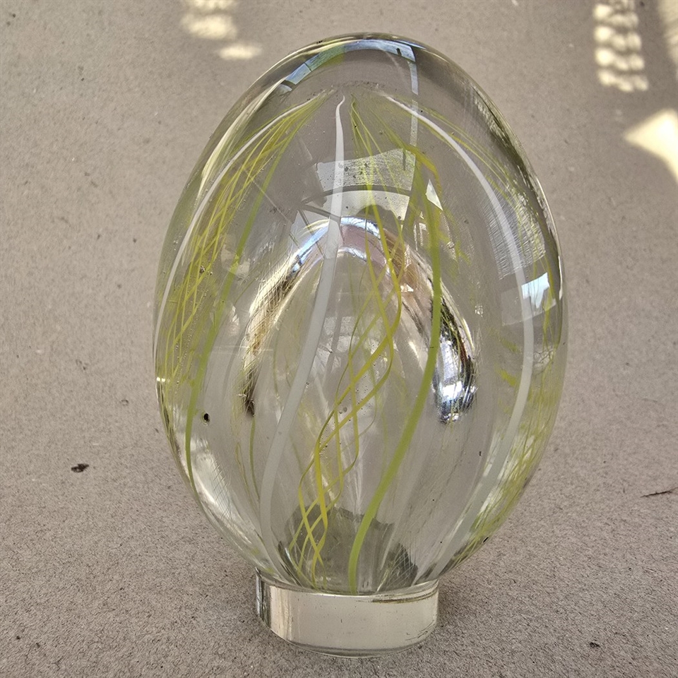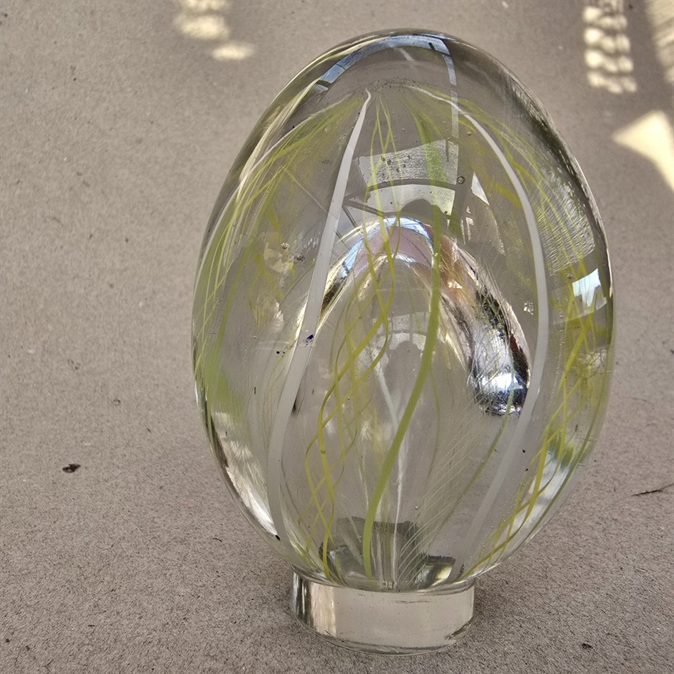 Vores æggeformede brevpresse er omhyggeligt fremstillet af glas og indeholder en fascinerende indre dekoration, der fanger øjet fra enhver vinkel.