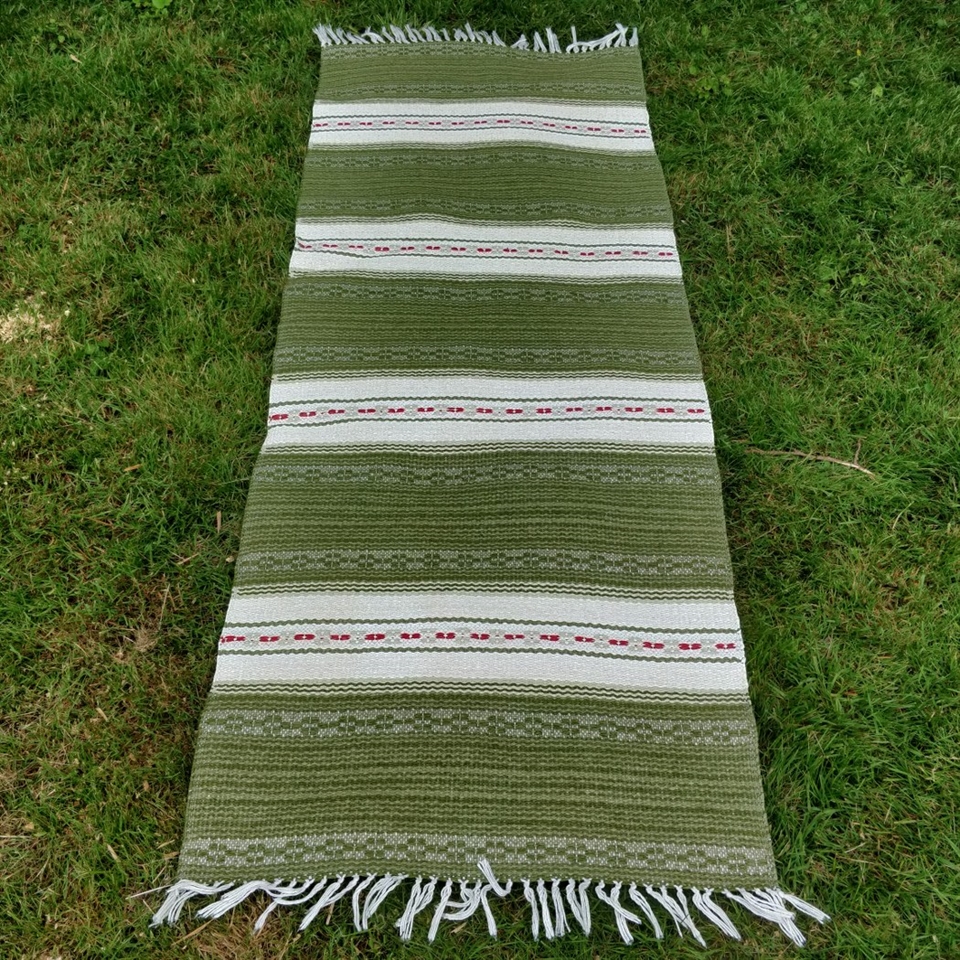 Tilføj karakter og stil til dit hjem med vores army og hvid farvede retro løber, og nyd godt af både æstetik og miljøbevidsthed.