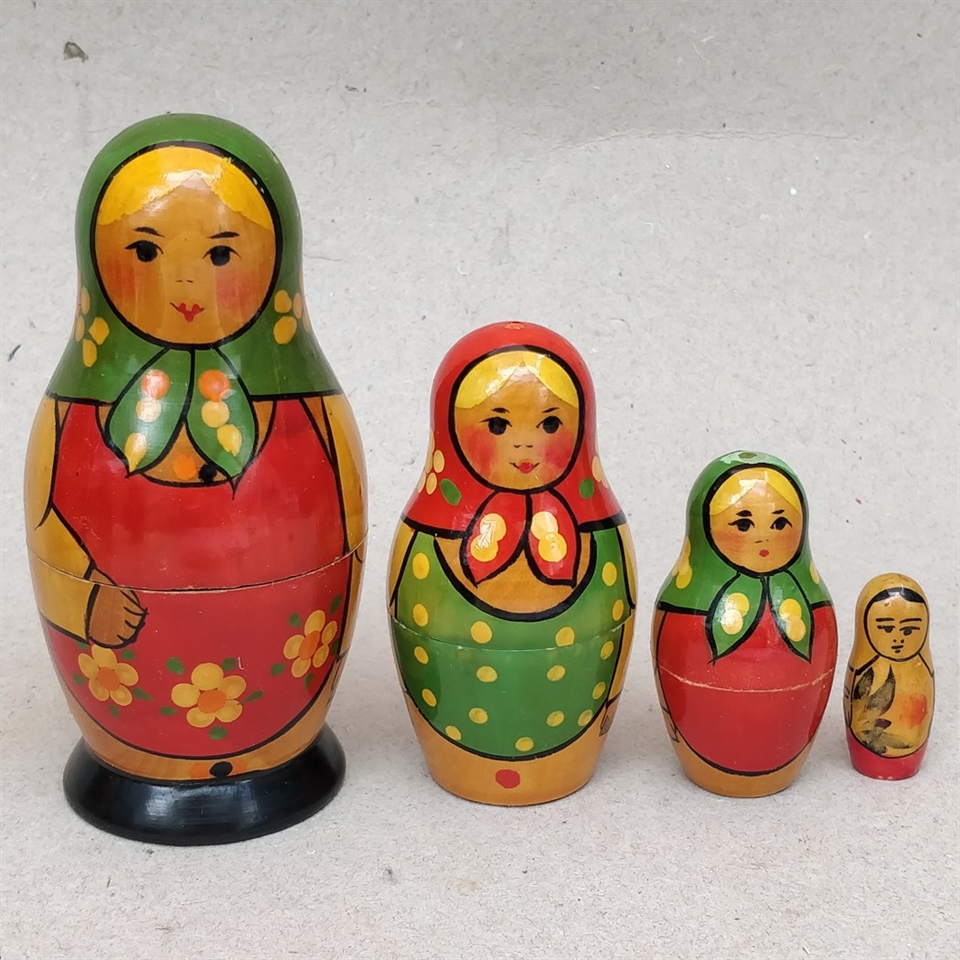 Opdag charmen ved russisk håndværk med vores sæt af 4 Babushka-dukker, også kendt som Matryoshka-dukker.