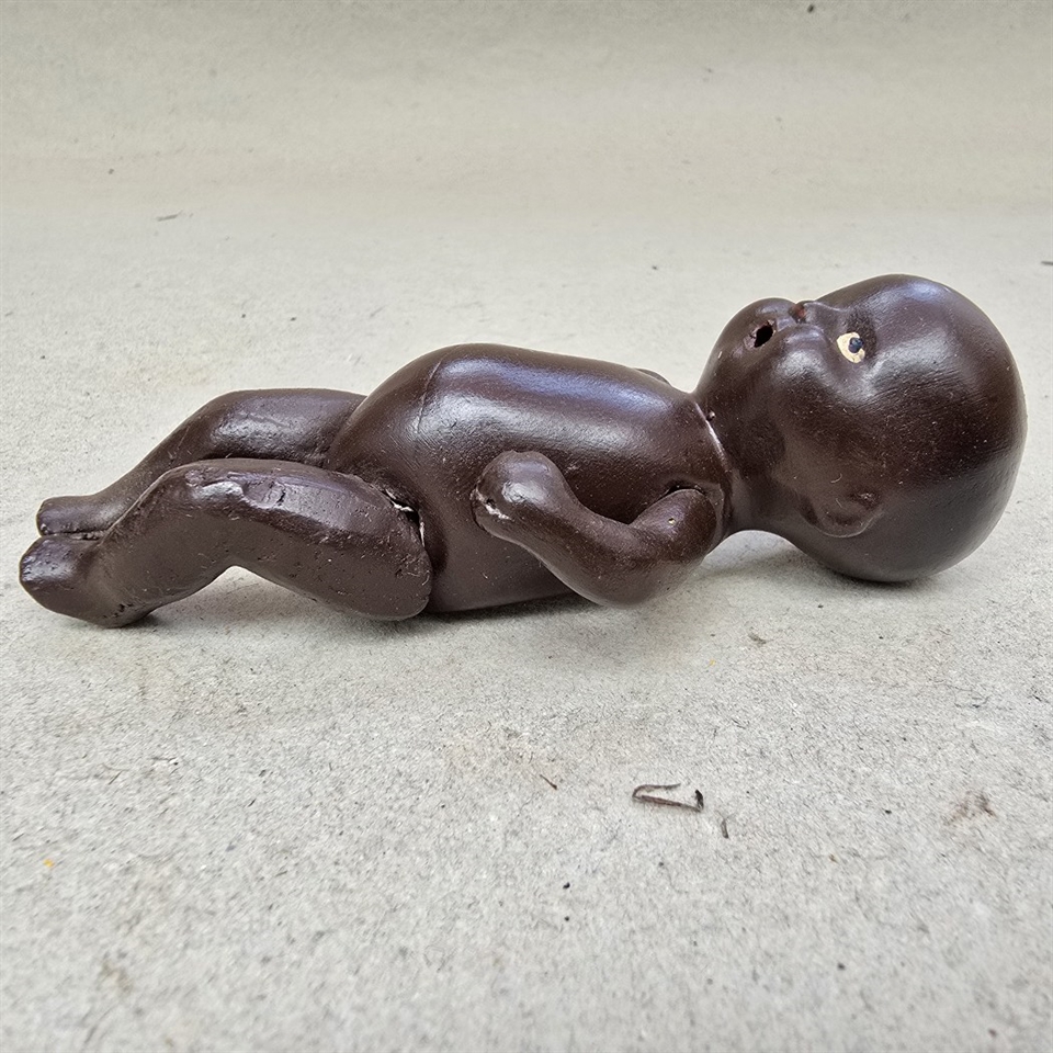Opdag en sjælden skat med denne charmerende 'Baby negerdukke, gammel dukke i keramik'. Perfekt for samlere og dem, der værdsætter vintage charme, denne unikke keramikdukke er et vidunderligt eksempel på klassisk legetøj med historisk værdi.