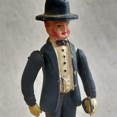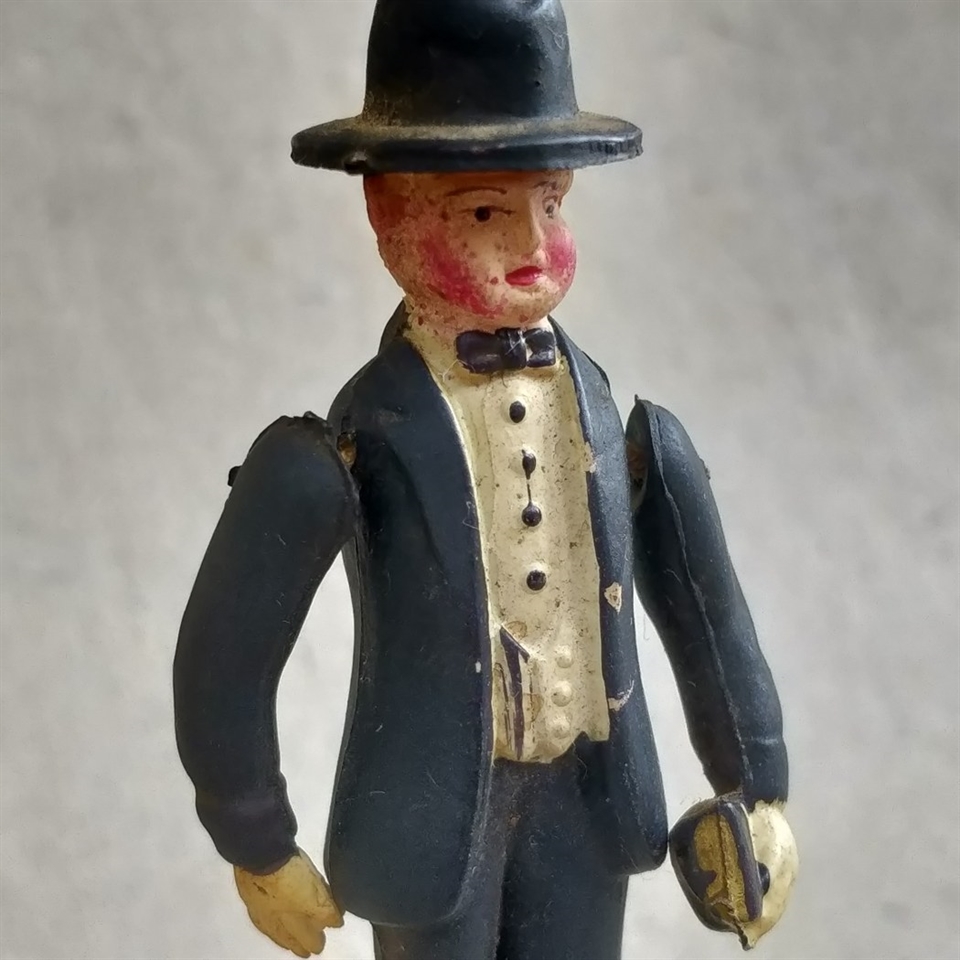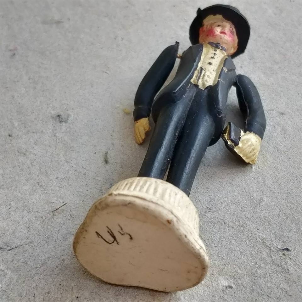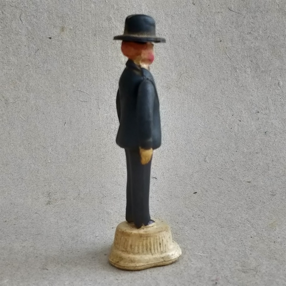 Opdag denne charmerende 'Bakkelit figur, konfirmand med hat og salmebog', en unik og nostalgisk genstand, der tilføjer et strejf af tradition og historie til enhver samling.
