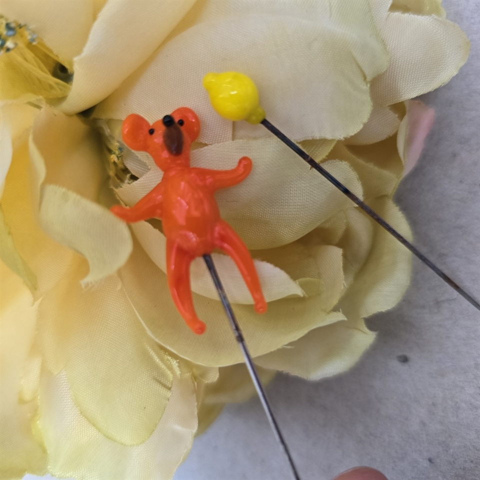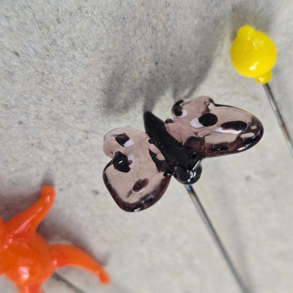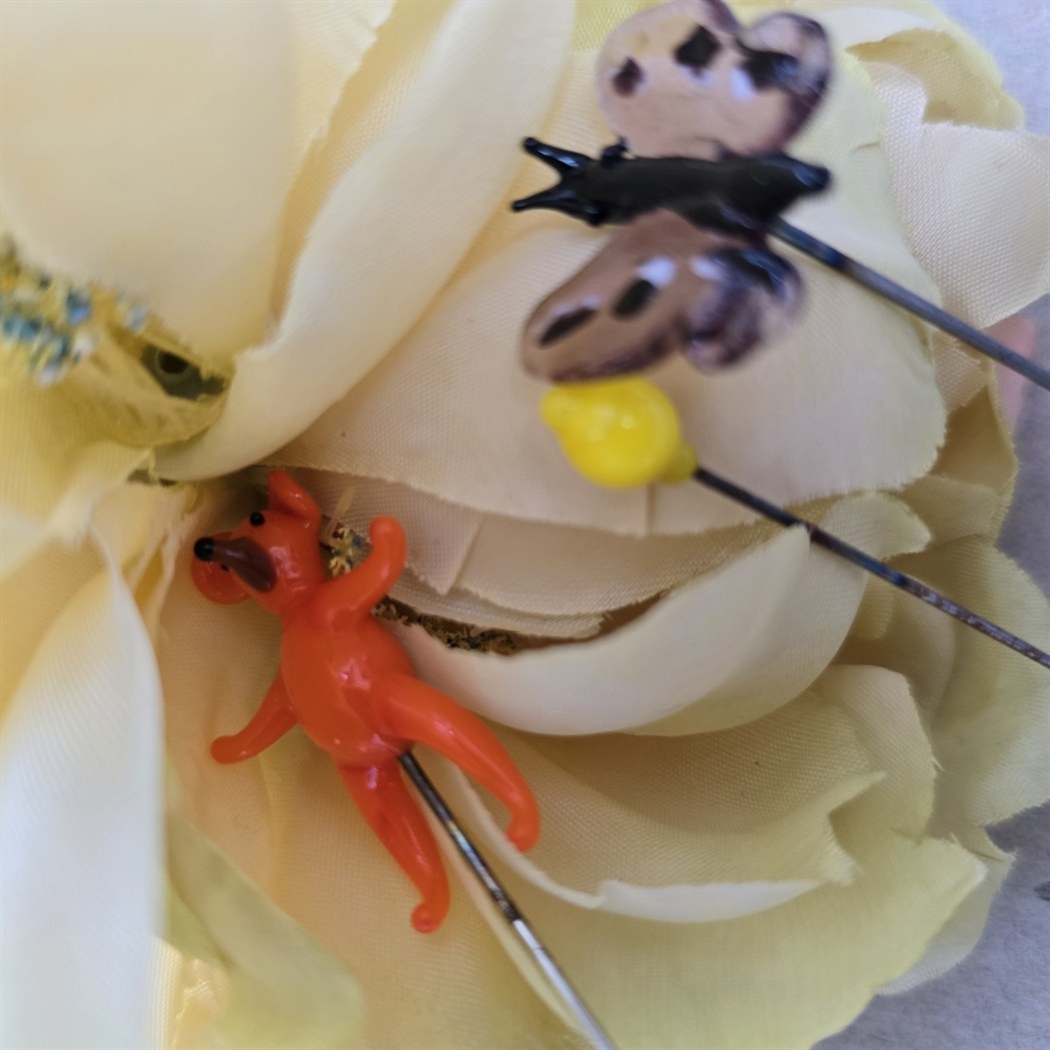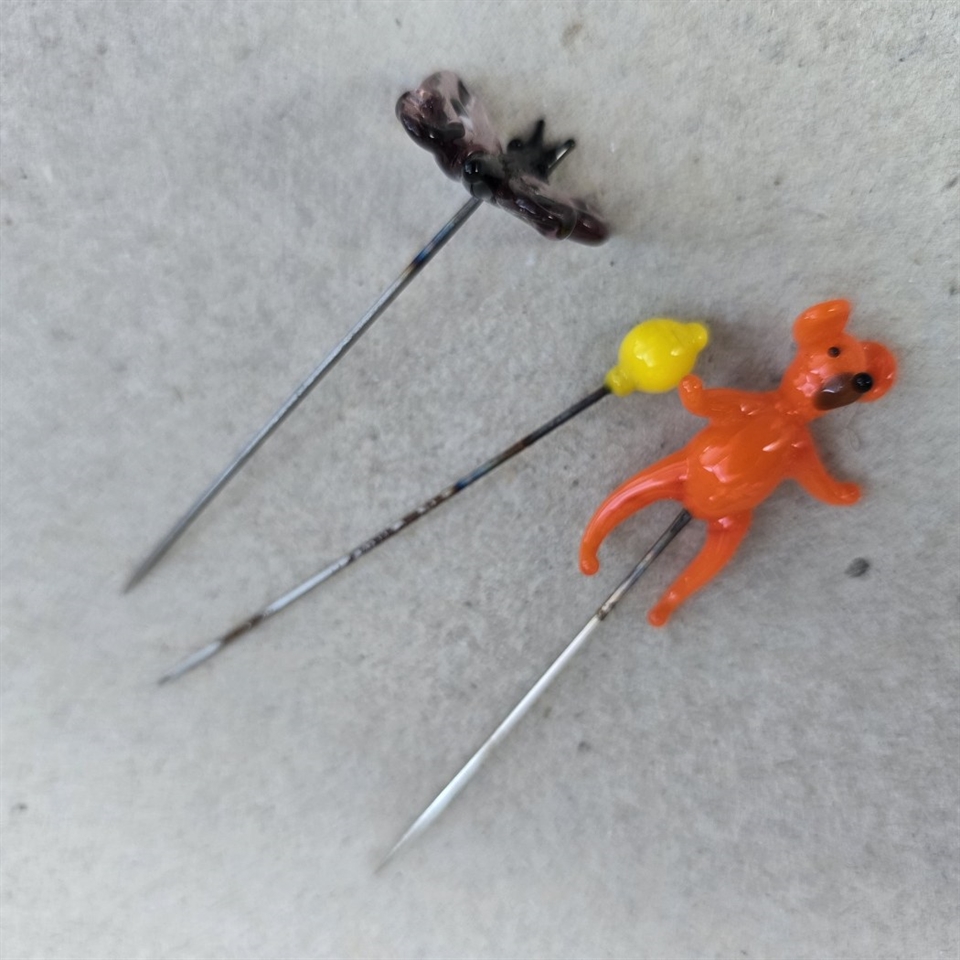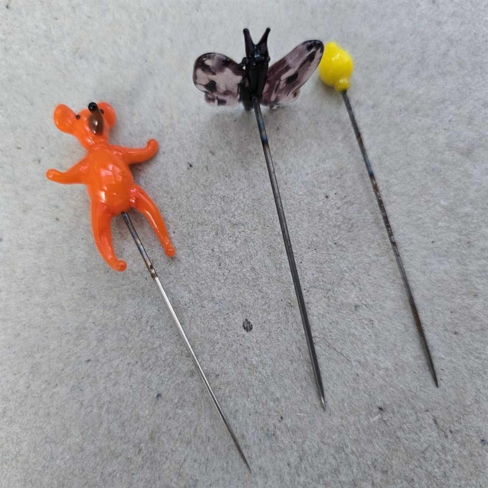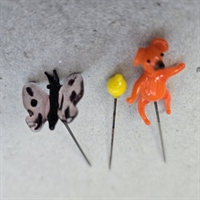 Oplev charmen af nostalgi med vores sæt af tre 'Bamse, citron, sommerfugl, gamle glas nipsenåle'.