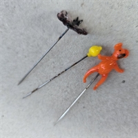 Hver nål i dette unikke sæt måler ca. 6,5 cm. i længden og fremstår i livlige farver: orange (bamse), lilla (sommerfugl) og gul (citron), der tilføjer et farverigt strejf til enhver samling.