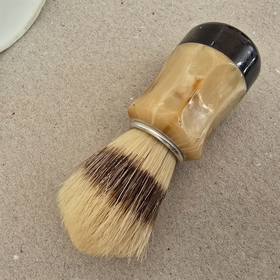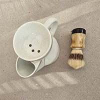 Den medfølgende barberkost er håndlavet med omhu og præcision, designet til at arbejde sammen med koppen for at løfte og blødgøre skæghår, samtidig med at huden bliver forberedt og beskyttet mod irritation. Denne kombination sikrer en exceptionel barberingsoplevelse hver gang.