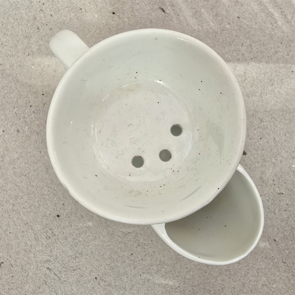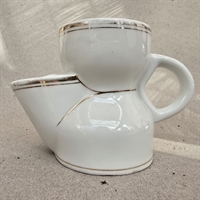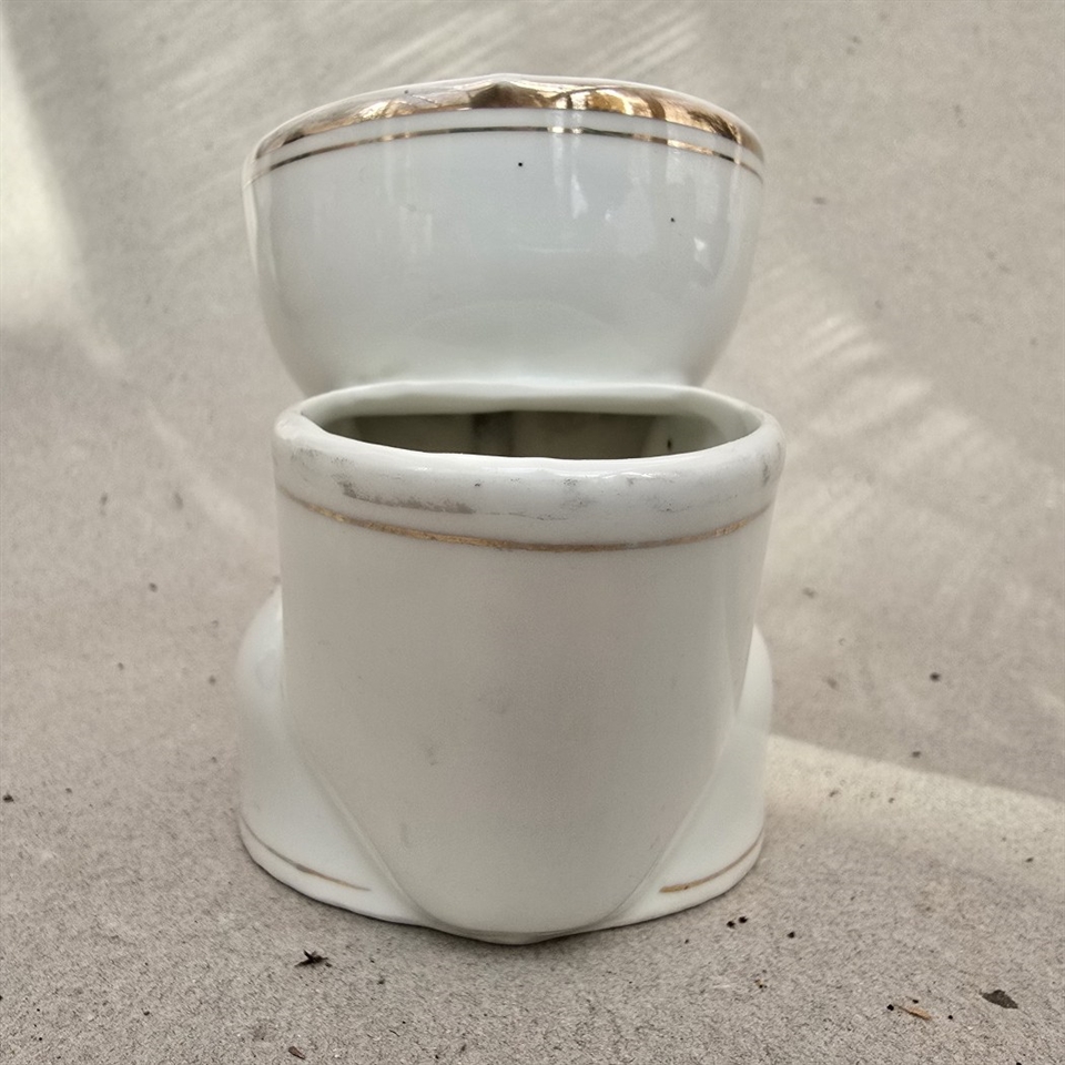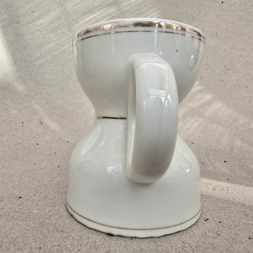 Vores barberkop er fremstillet af hvidt porcelæn, prydet med en sofistikeret guldkant, der tilføjer et luksuriøst flair. Med en højde på 10,5 cm. er koppen perfekt dimensioneret til at holde din favorit barberkost og skabe det perfekte skum til en glat, tæt barbering.