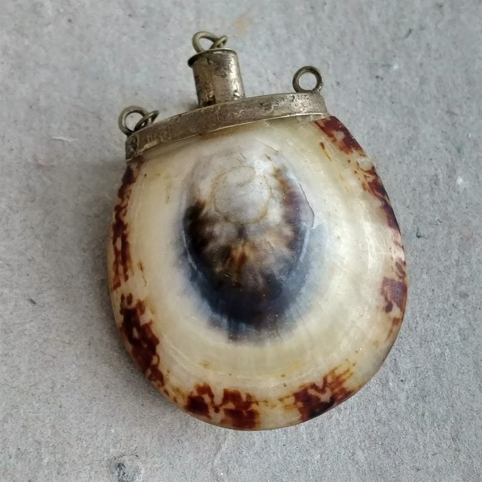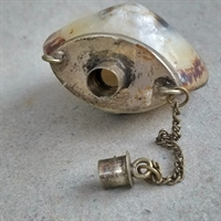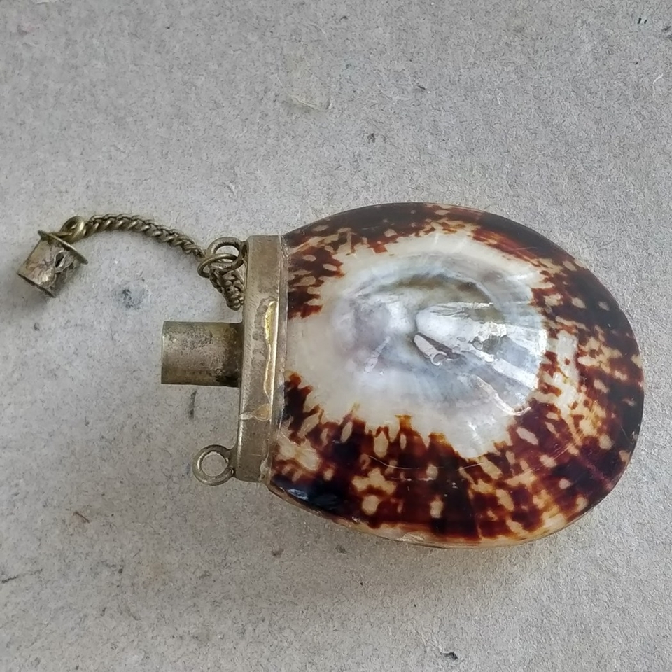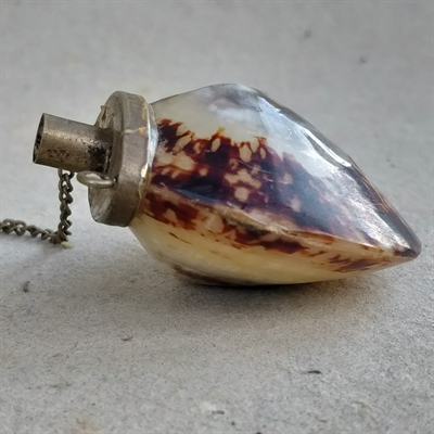 Mærk charmen ved historien med denne unikke 'Beholder samlet af 2 skaller, med hælde tud. Gammel flaske.'