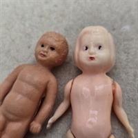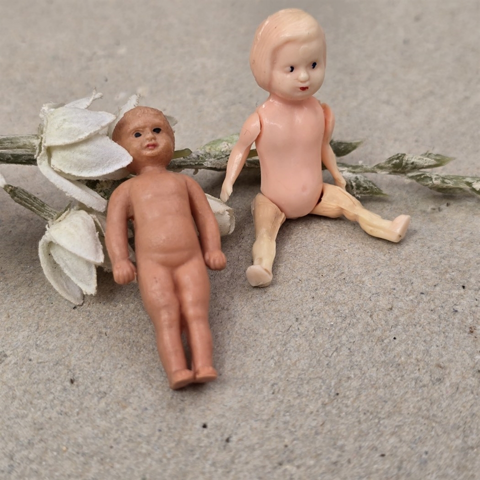 Oplev den udsøgte charme og nostalgiske elegance med vores eksklusive sæt af to antikke dukker, "Bevægelig og fast dukke, små gamle dukker". Dette enestående sæt består af to fortryllende dukker, der hver især fortæller en unik historie gennem deres detaljerige udformning og autentiske patina.