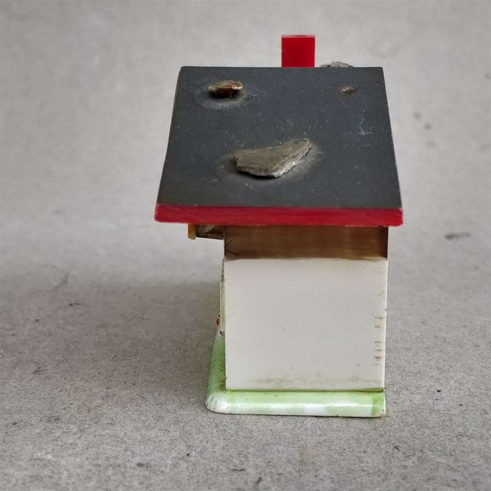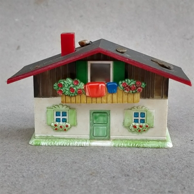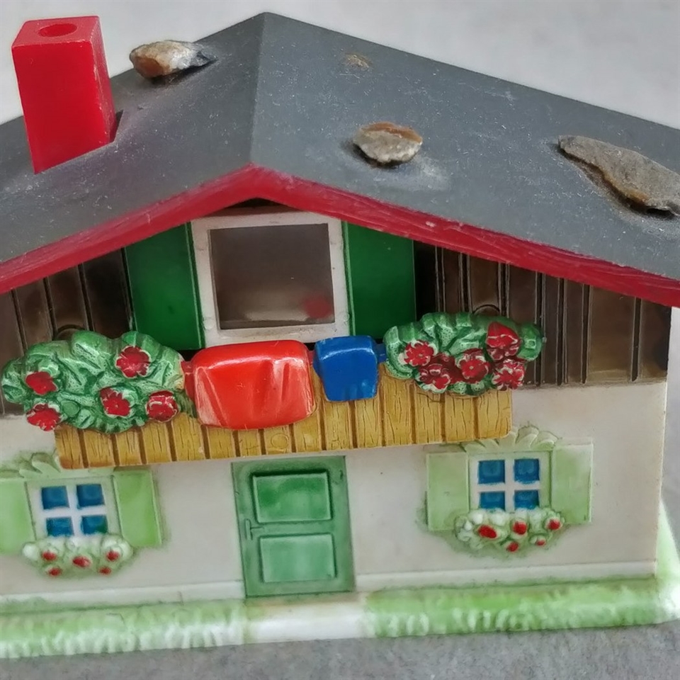 Denne unikke schweizerhytte er fremstillet af holdbar plastik og måler 5 cm. i højden, hvilket gør den ideel til dekorativ udstilling eller som en del af en legetøjssamling.