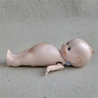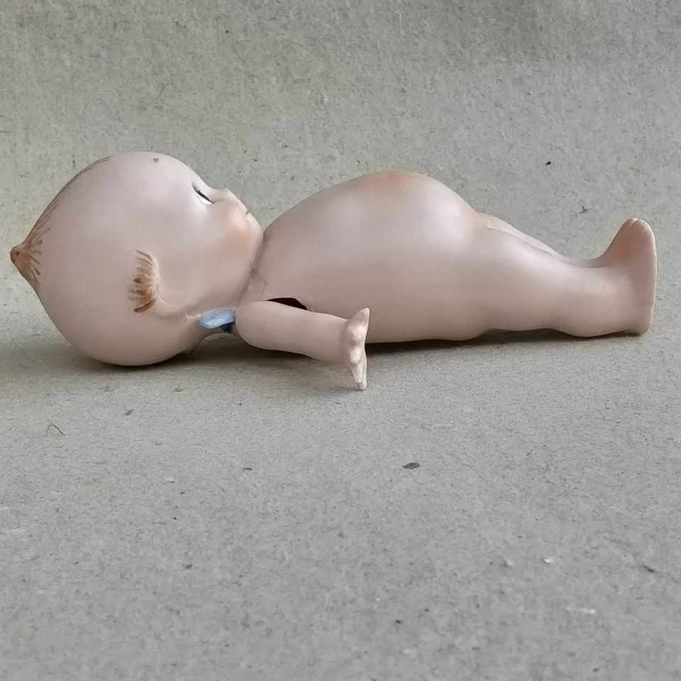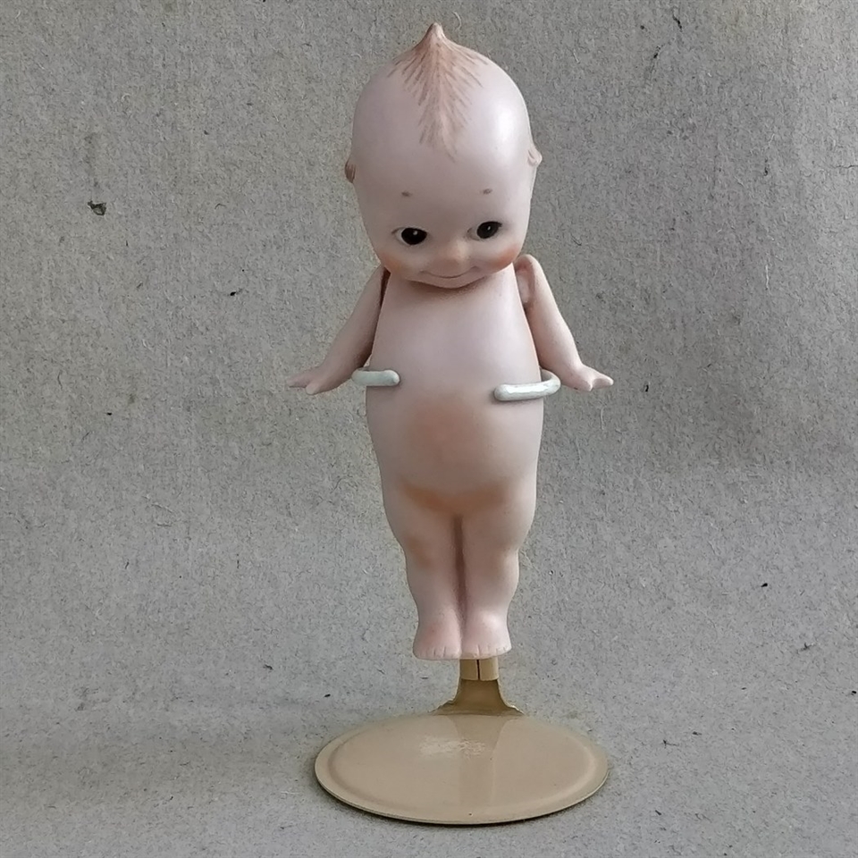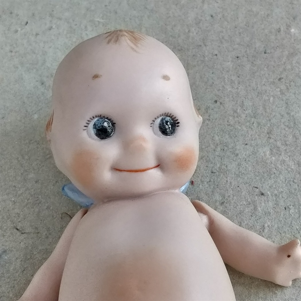 Denne smilende biscuit-babydukke er en ægte skat for samlere og vintage legetøjsentusiaster.