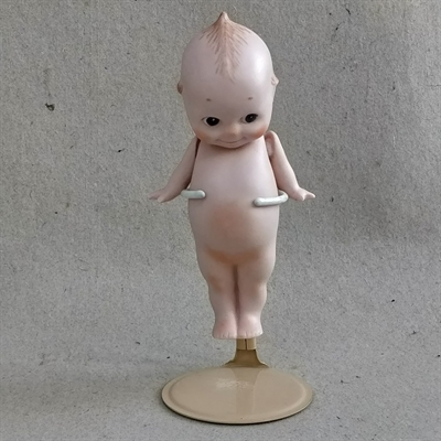 Dukken måler 16,5 cm. i højden og er udført med bevægelige arme, hvilket tilføjer et livligt touch til dens præsentation.
