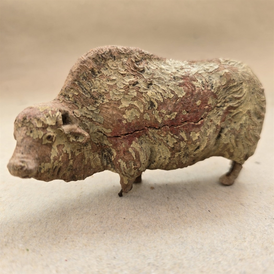 Oplev charmen fra en svunden tid med vores 'Bisonokse gammelt patineret legetøjsdyr fra 1930'erne'.