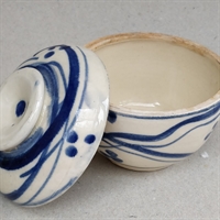 Brug denne charmerende lerkrukke til at opbevare småting eller simpelthen som en del af din hjemmeindretning, hvor den vil tiltrække beundrende blikke og samtale.