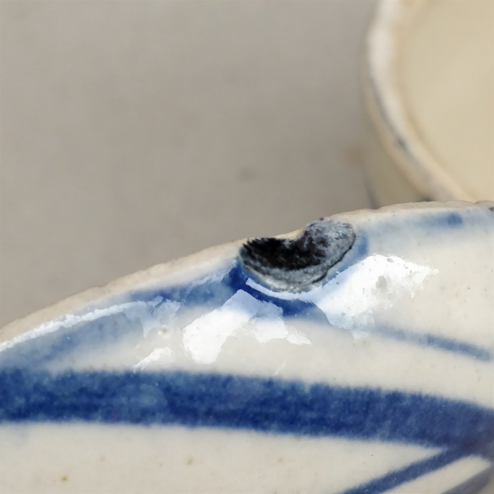 Vær opmærksom på, at på grund af dens alder og håndlavede natur, bør denne krukke håndteres med omsorg.