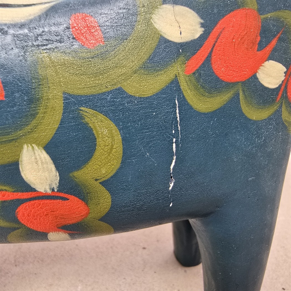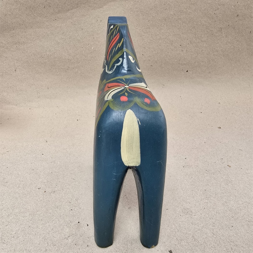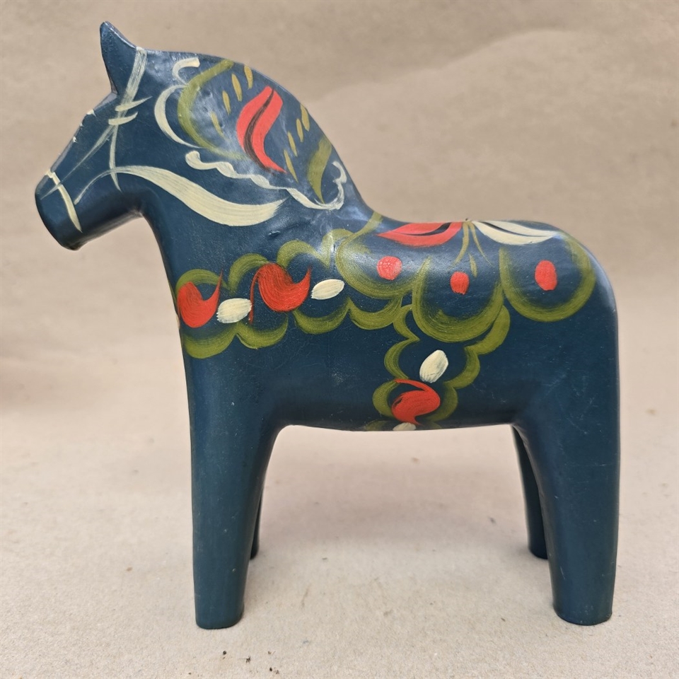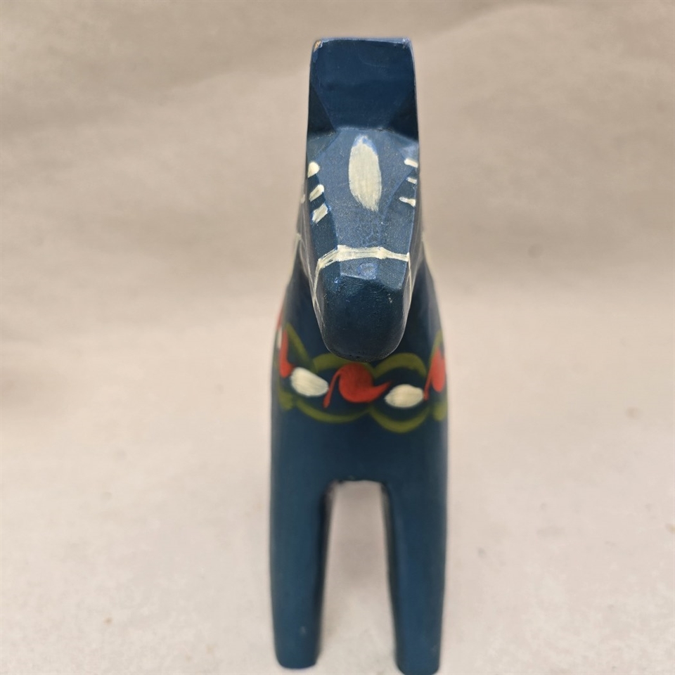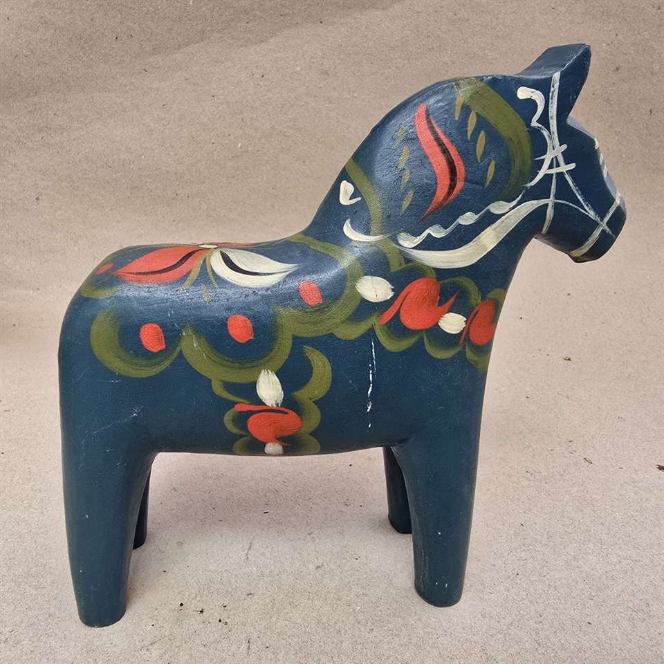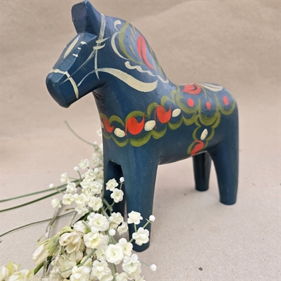 Vores smukke Dalahest er omhyggeligt håndmalet i en iøjnefaldende blå farve, der vil fange øjet i ethvert rum.
