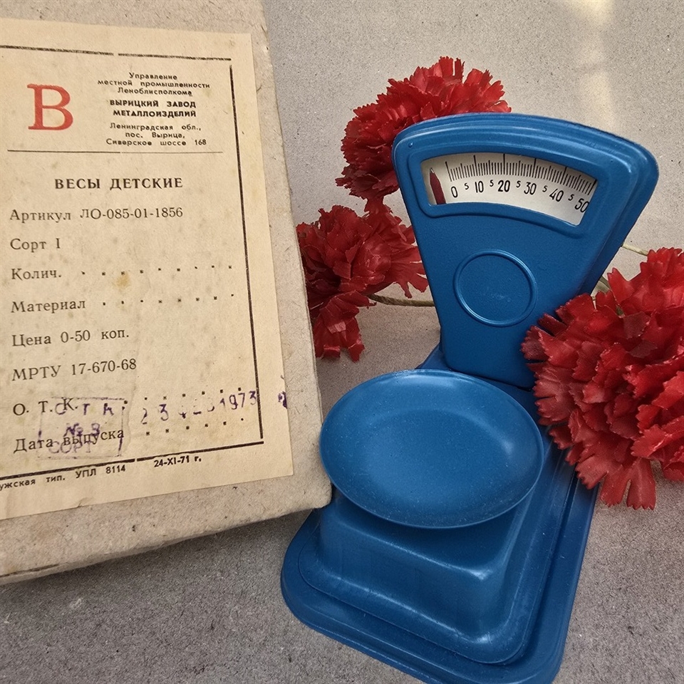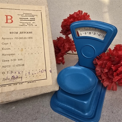 Opdag et stykke historisk legetøj med denne charmerende 'Blå legetøjsvægt fra 1973, russisk i originalæske'.