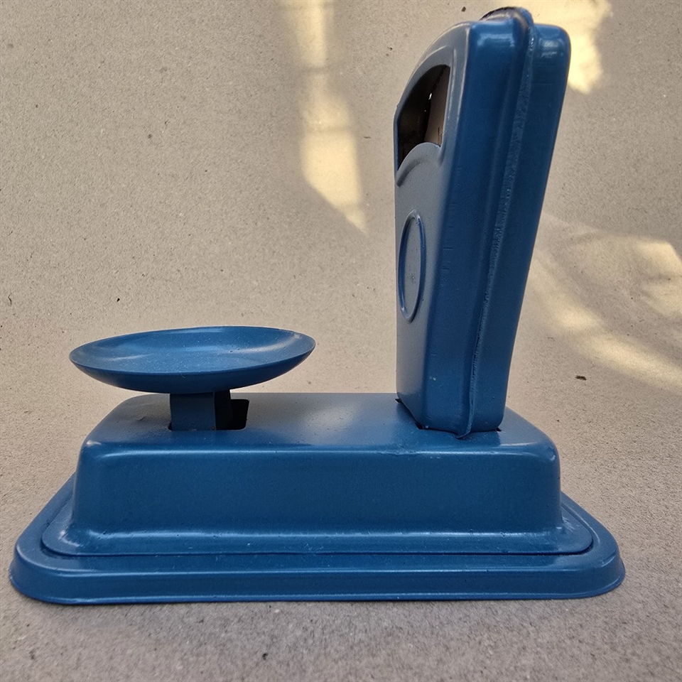 Giv dit legetøjssamling et unikt præg med denne nostalgiske blå legetøjsvægt, eller overrask en legetøjssamler med denne særlige gave, der vækker minder og fremkalder glæde.