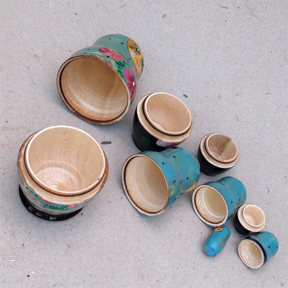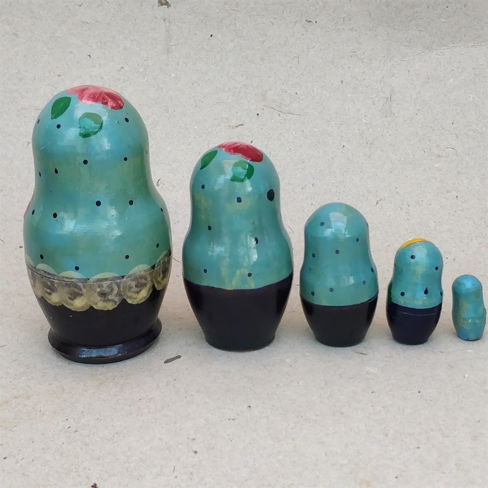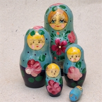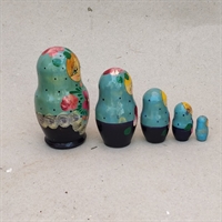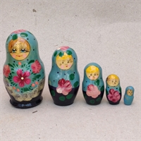 Dette sæt består af 5 smukt håndmalede russiske babushka-dukker, der kan deles og placeres indeni hinanden.