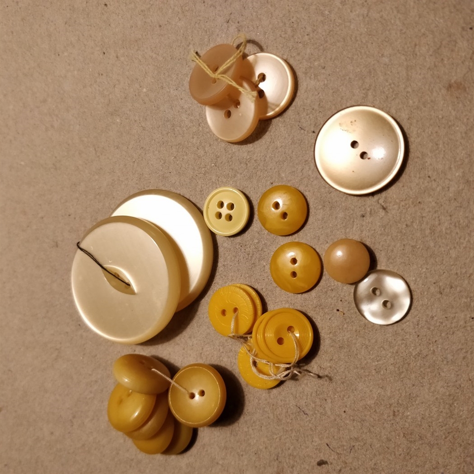 Opgrader dine syprojekter med vores sæt af 'Blandede gule knapper, assorteret lot genbrugs knapper - 23 stk.'