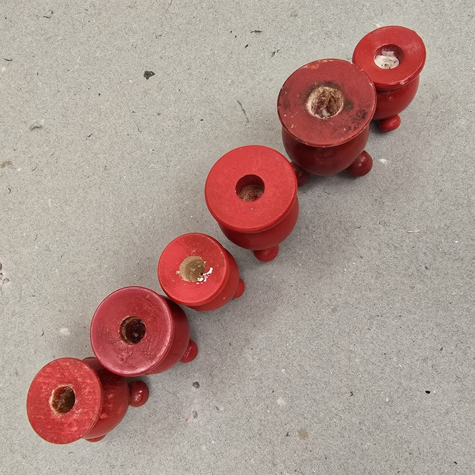 Disse nostalgiske kuglestager vil uden tvivl tilføje et strejf af vintage hygge til din juledekoration. Hvert sæt består af seks unikke træstager, der omhyggeligt er udvalgt for at give din festlige indretning et autentisk svensk pift.
