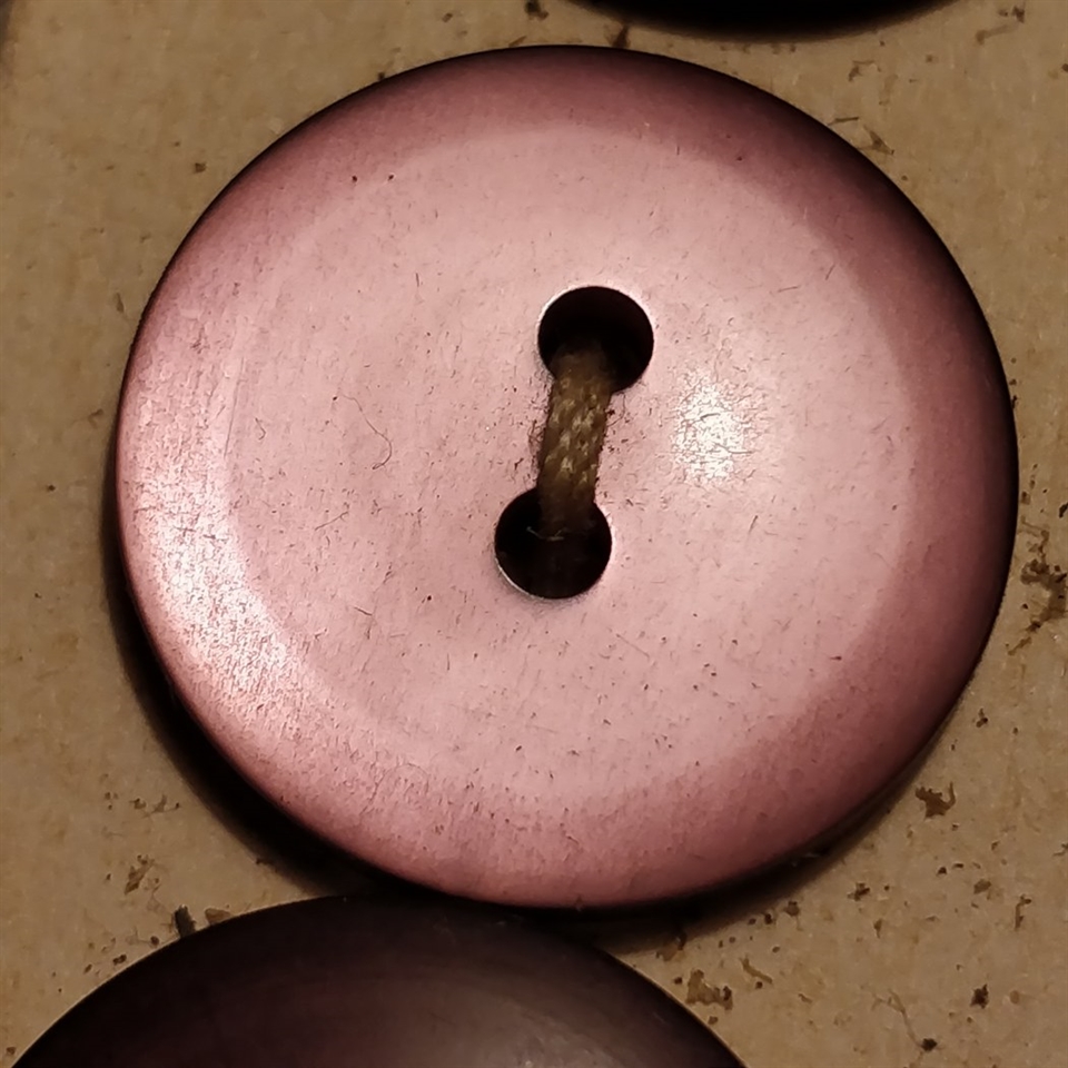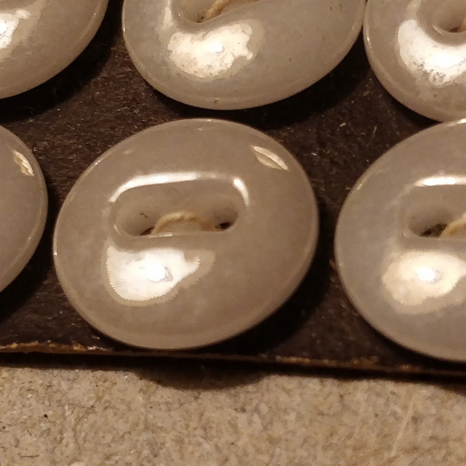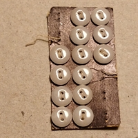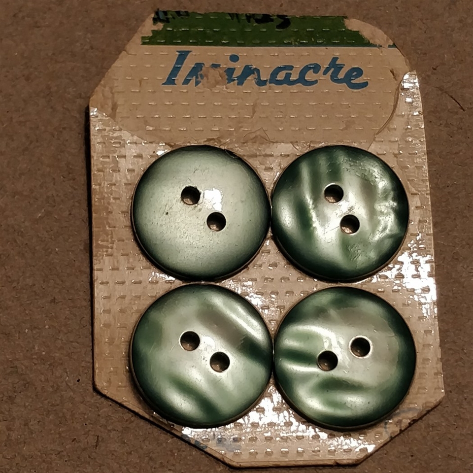 Produktbeskrivelse: - Antal: 36 stk. - Oprindelse: Paris, Frankrig - Størrelse: Variabel fra 11 til 20 mm i diameter - Farver: En charmerende blanding af grønne, hvide og lilla nuancer - Form: Runde knapper med 2 huller for nem påsyning - Type: Vintage, hvilket betyder at hver knap har sin egen unikke patina og udseende.