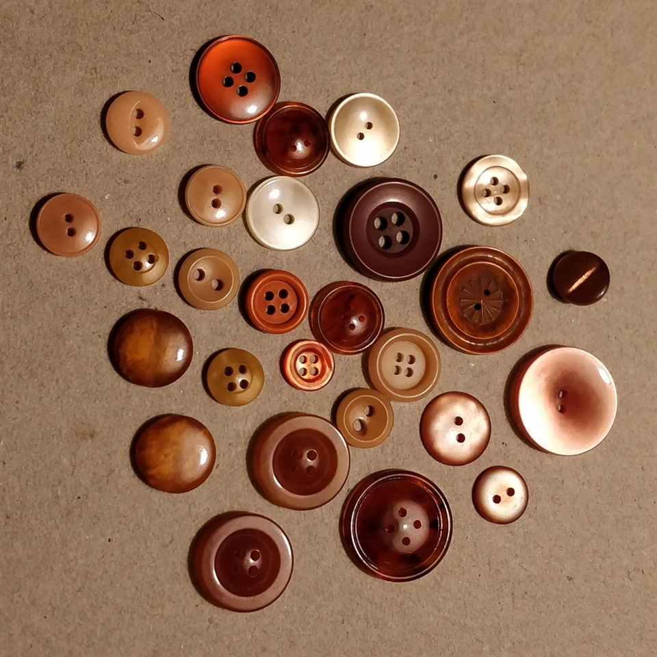 Dette særlige lot indeholder 27 forskellige knapper i varierende nuancer af orange, hvilket tilfører en livlig og varm farve til ethvert tøj eller håndarbejdsprojekt.