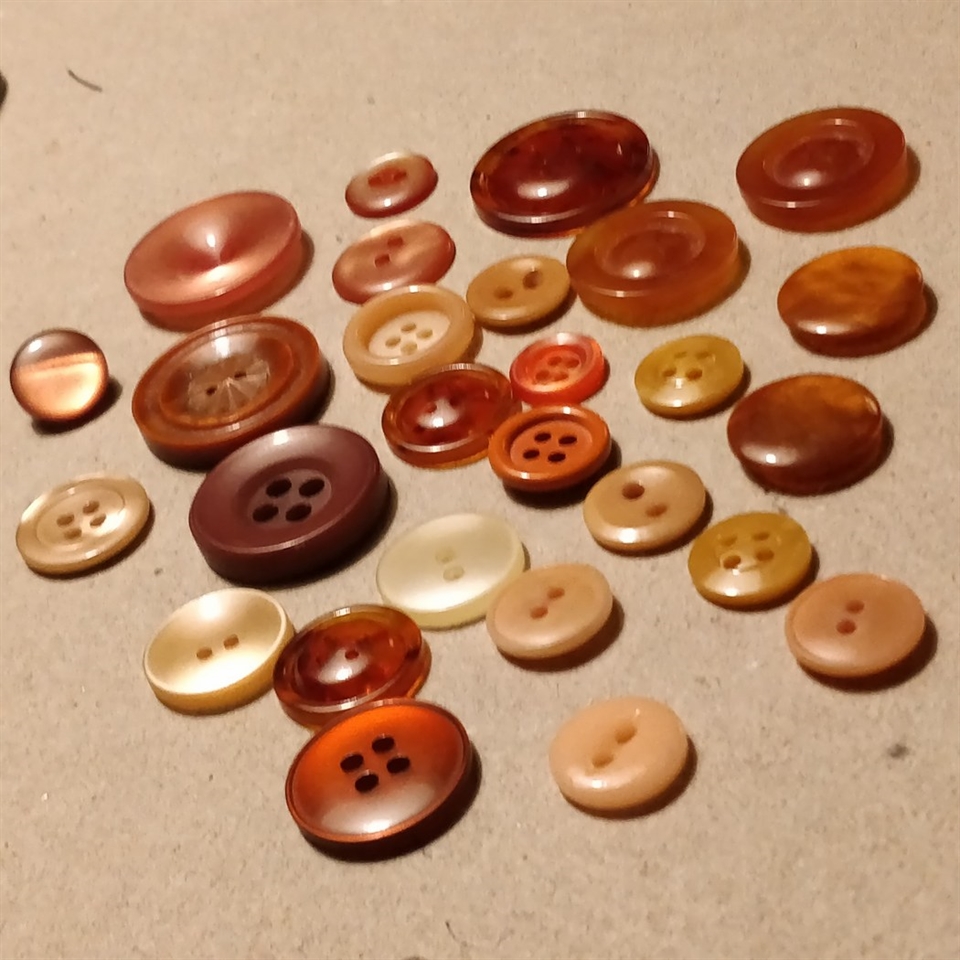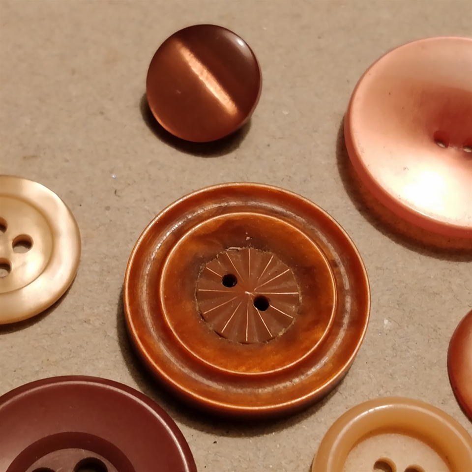 Opdag skønheden og charmen i vores unikke 'Blandet orange lot retro plastik knapper, 27 stk.' – perfekt for enhver modeentusiast eller hobbyist, der værdsætter et strejf af vintage flair.