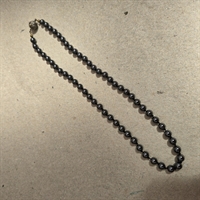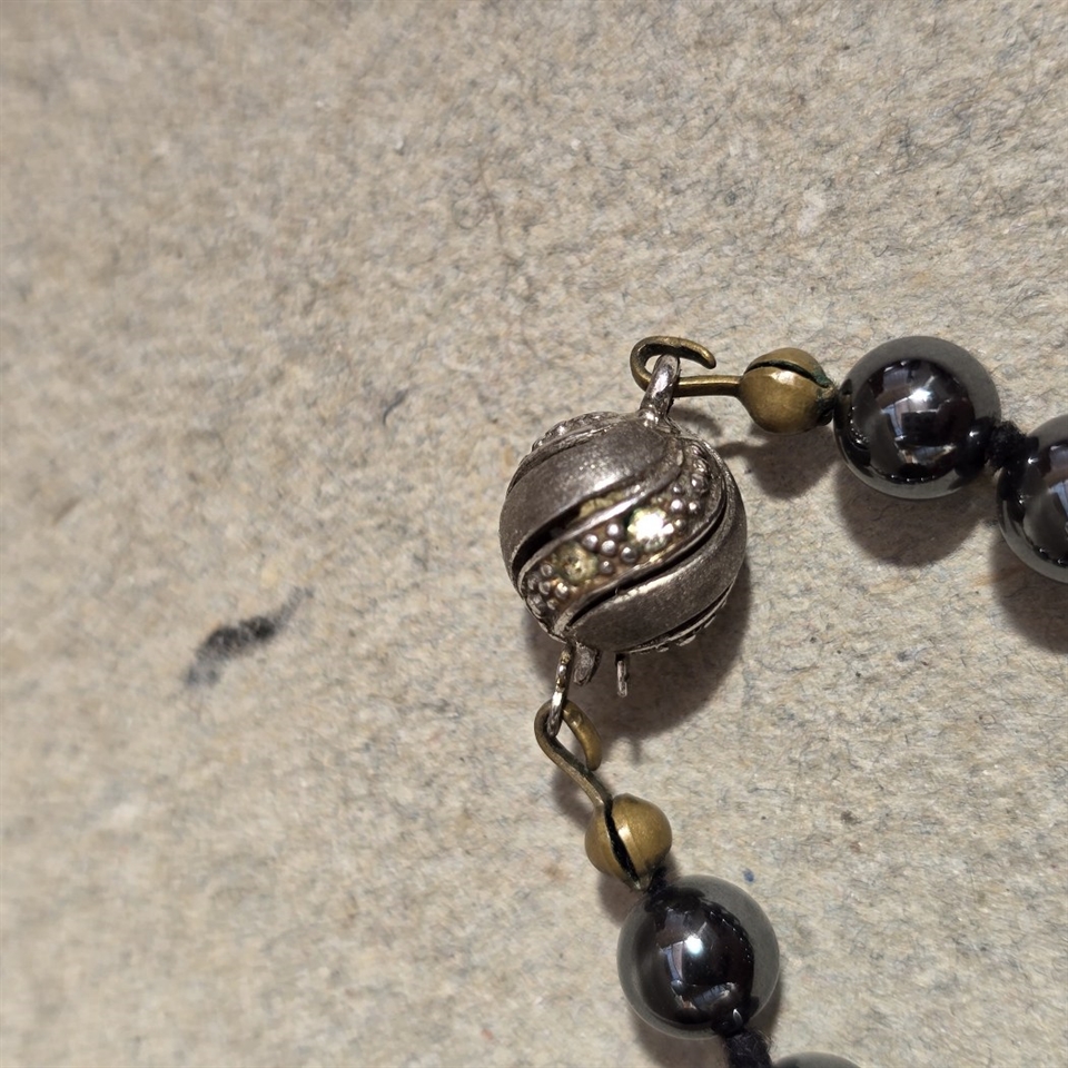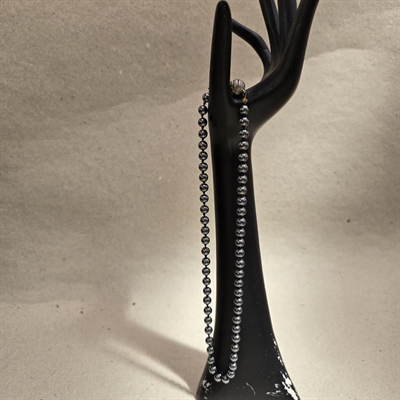 Denne yndefulde halskæde er nøje håndlavet med seks millimeter blodstenperler, kendt for deres smukke grå nuancer, som symboliserer styrke og vitalitet.