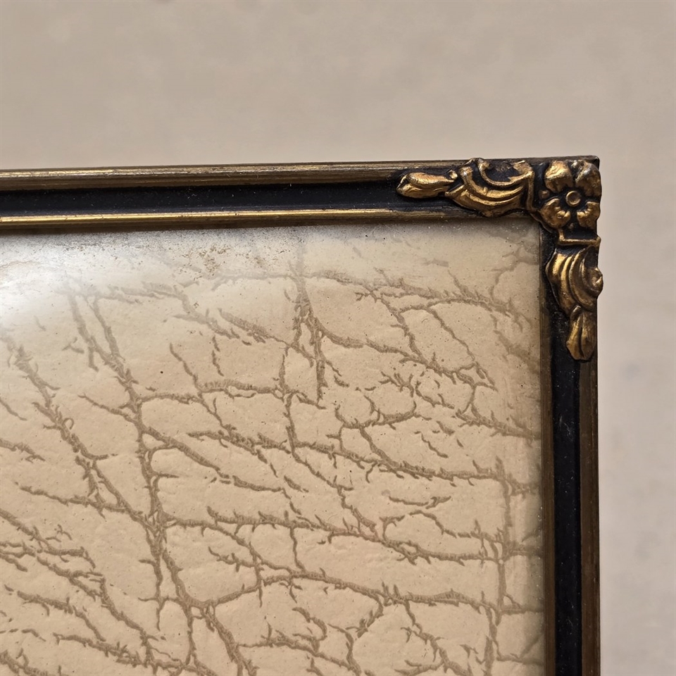 Perfekt til enhver, der værdsætter det ypperste inden for indretningskunst, vil denne fotoramme være en bemærkelsesværdig tilføjelse til enhver stue, kontor eller galleri. Gør dit hjem til en udstilling af tidløs elegance og uovertruffen stil med "Blomster Hjørner og Buet Glas på Gammel Fotoramme".