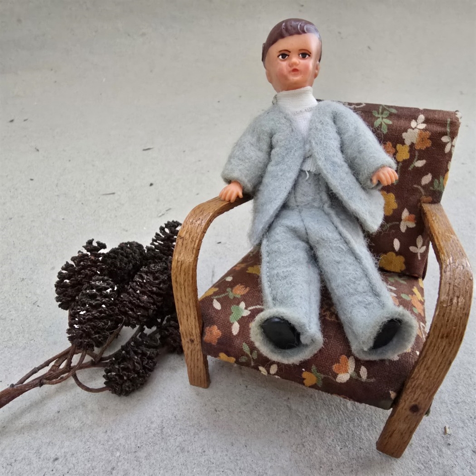 Denne smukt udformede stol måler 7,5 cm. i højden med en siddehøjde på 3 cm., perfekt dimensioneret for at bringe liv til dine dukkehus-scenerier. Forestil dig, hvordan denne lænestol kan pynte i stuen eller et hyggeligt læsehjørne i dit dukkehus, hvor de små dukker kan slappe af og nyde omgivelserne.