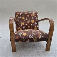 Opdag charmen og detaljerne i denne bedårende 'Blomster polsteret lænestol, gammel dukkehus stol' – en uimodståelig tilføjelse til ethvert dukkehus, der ønsker et strejf af nostalgi og elegance. Med sine indbydende brun-blomstrede polstringer og solidt træarmlæn, tilbyder denne miniature lænestol en autentisk oplevelse i miniformat.
