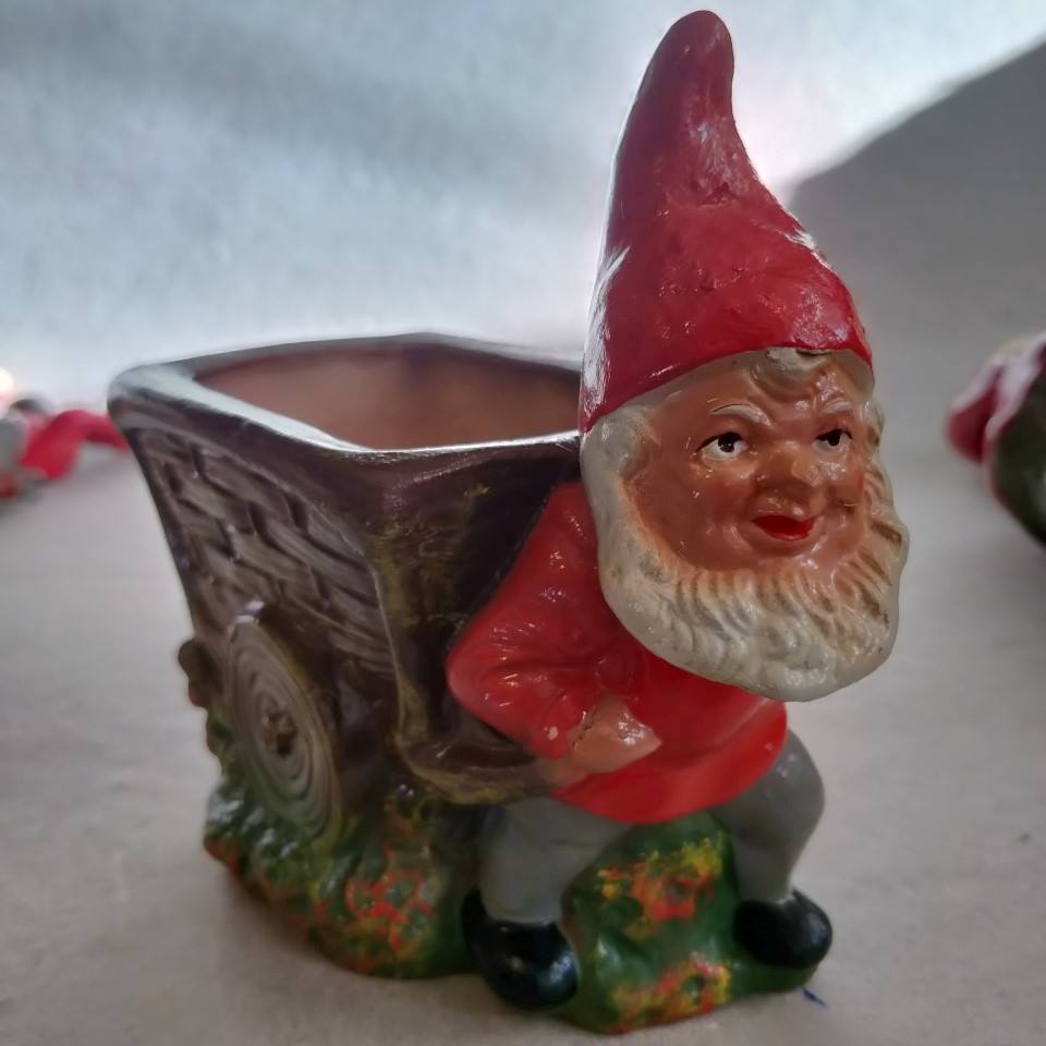 Urtepotte skjuler, som trækvogn bag julemand med stort skæg og nissehue.