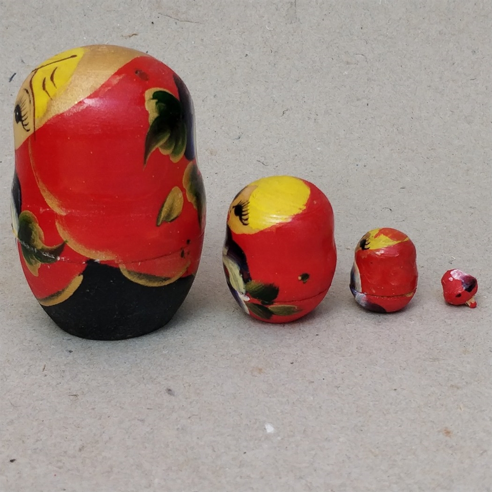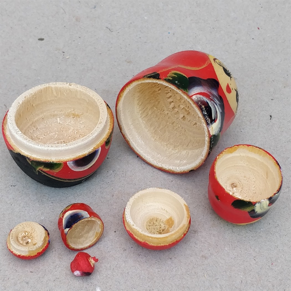 3 af dukkerne kan åbnes og gemmer på en mindre dukke indeni, hvilket gør dem både fascinerende og underholdende at udforske.