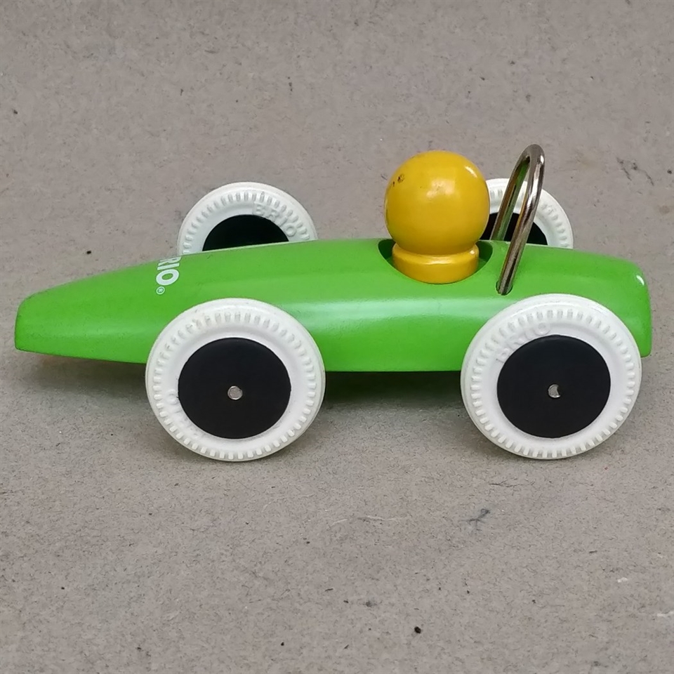 Denne skønne racerbil er fremstillet i træ og malet i en livlig græsgrøn farve, der helt sikkert vil fange dit barns opmærksomhed.