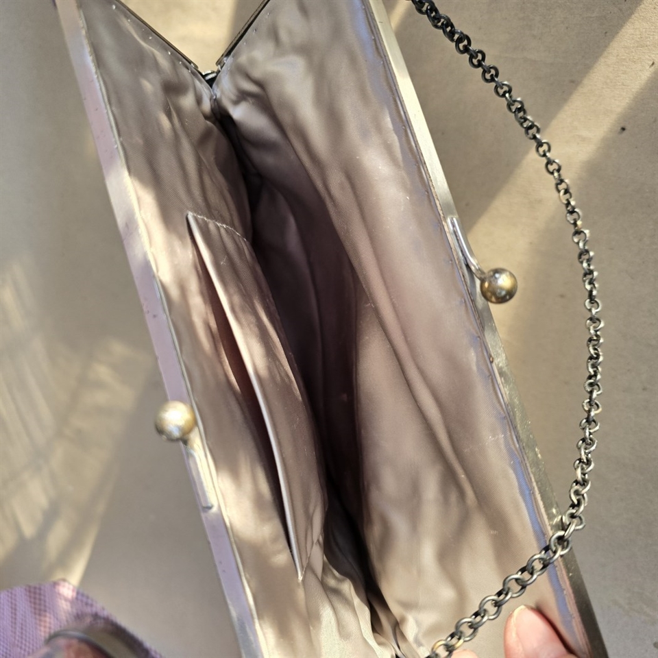 Udstyret med en elegant kædehank, er denne vintage taske ikke kun praktisk, men også yderst stilfuld.