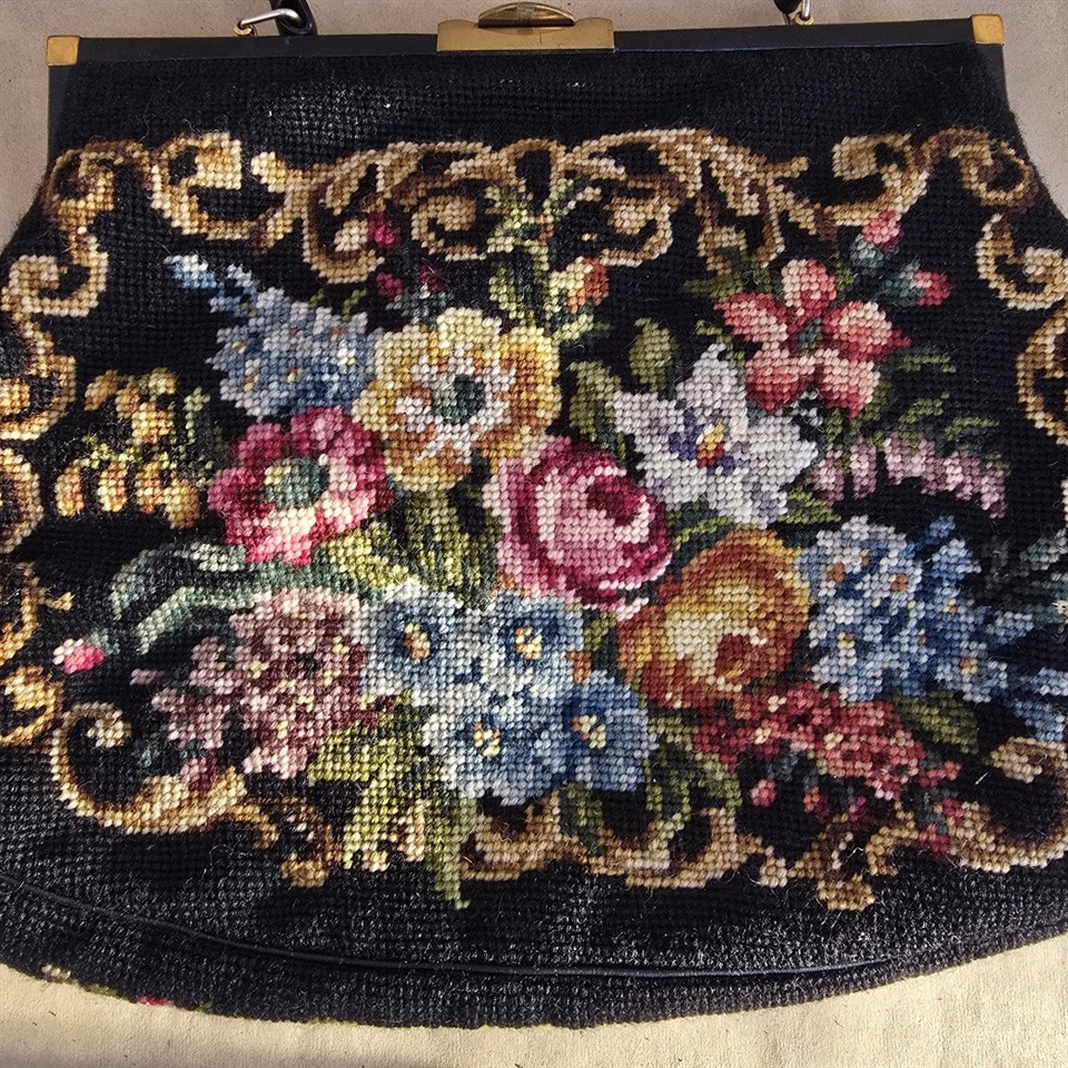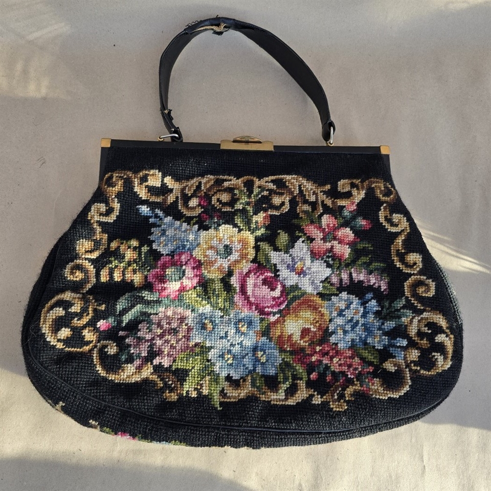 Opdag charmen ved vintage med 'Broderet stor vintage taske, blomster broderitaske'.