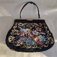 Denne smukke taske er prydet med iøjnefaldende farverige blomster broderet på en klassisk sort baggrund, hvilket giver et tidløst og elegant udtryk.