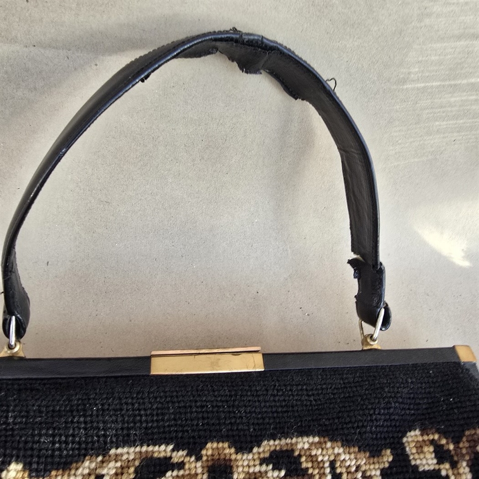 Selvom taskens hank trænger til en udskiftning eller limning, tilbyder denne taske en fantastisk mulighed for at tilføje en unik og stilfuld accessory til din garderobe, samtidig med at du støtter genbrug og bæredygtighed.