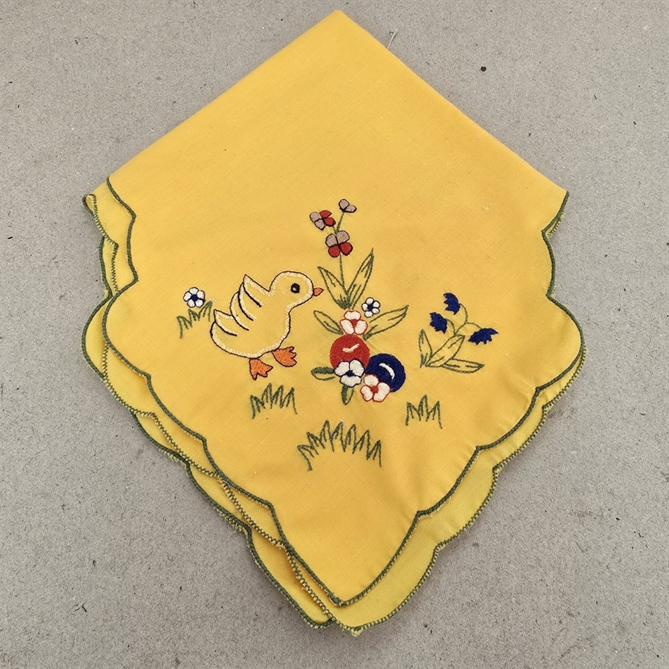 Disse indbydende servietter er prydet med klassiske påskemotiver, herunder søde kyllinger og farverige blomster, alle smukt broderet for at skabe en ægte følelse af forår.