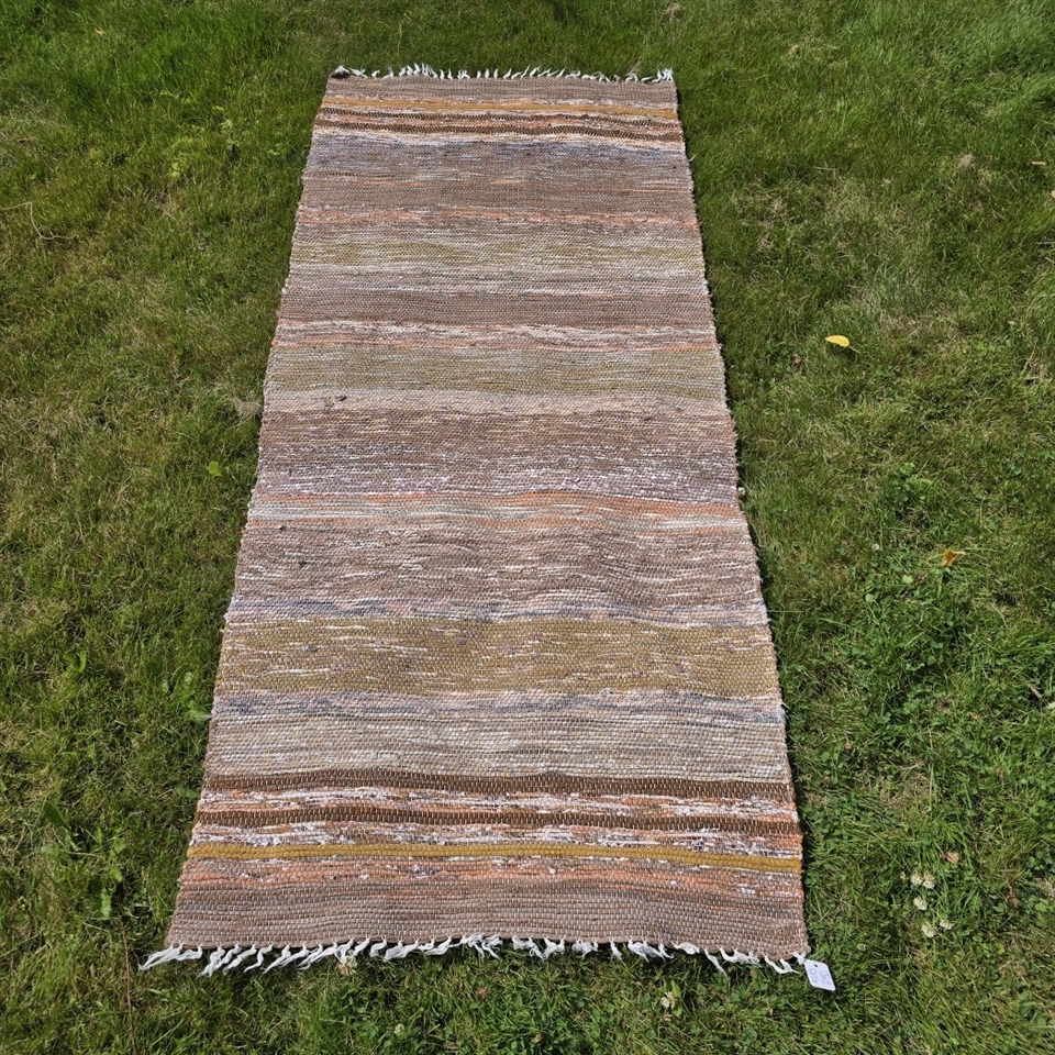 Opdag den rustikke charme og varme med vores 'Brun beige nuancer striber i svensk kludetæppe'.