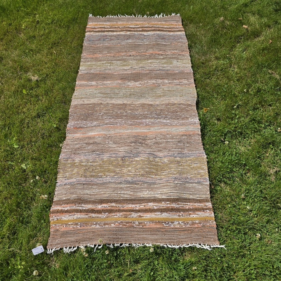 Dette autentiske svenske kludetæppe, målende 81 x 191 cm., er perfekt til at tilføje et hyggeligt og indbydende element til dit sommerhus eller enhver plads, der trænger til en hjemlig berøring.