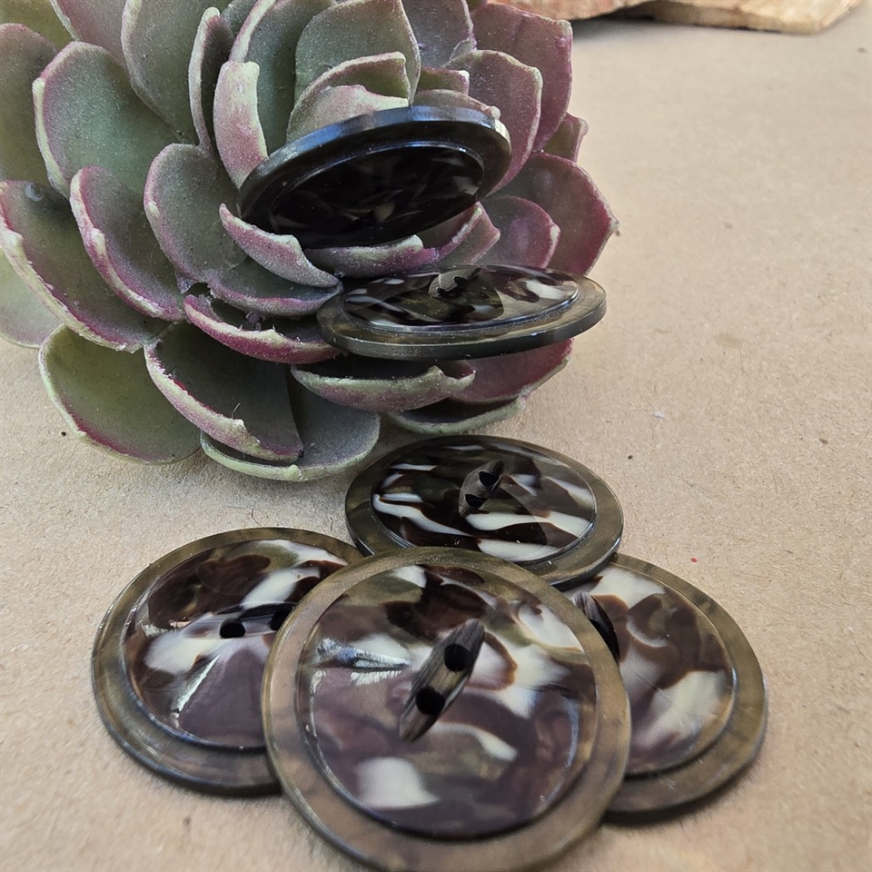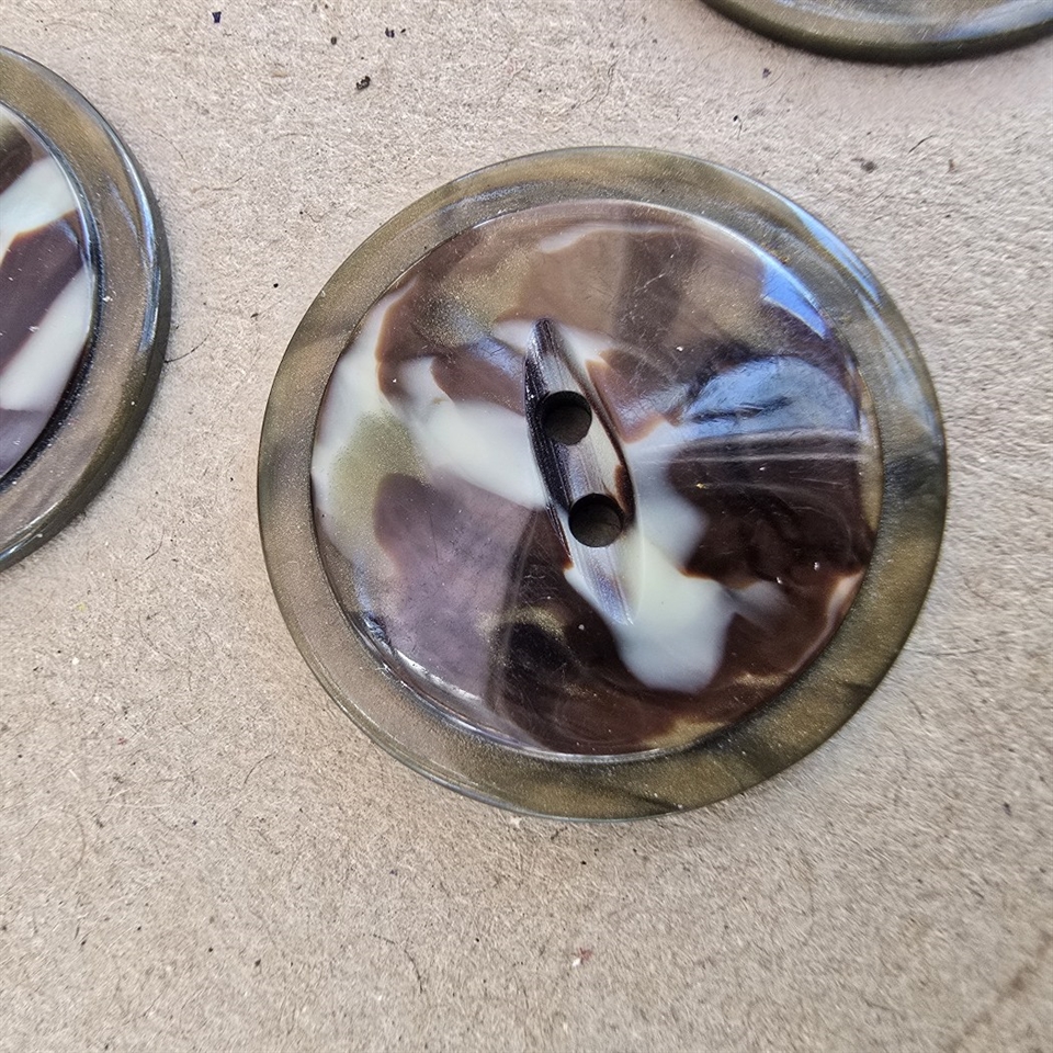 Opgrader dit håndarbejde eller din vintage garderobe med disse autentiske brunmelerede vintage plastikknapper direkte fra Paris.