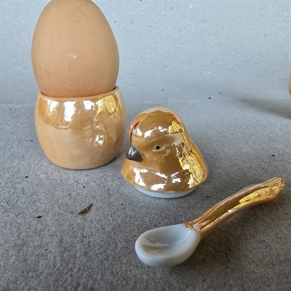 Den medfølgende ske er også lavet af porcelæn, hvilket sikrer, at du har alt, hvad du behøver for en fuldendt æggespisningsoplevelse.