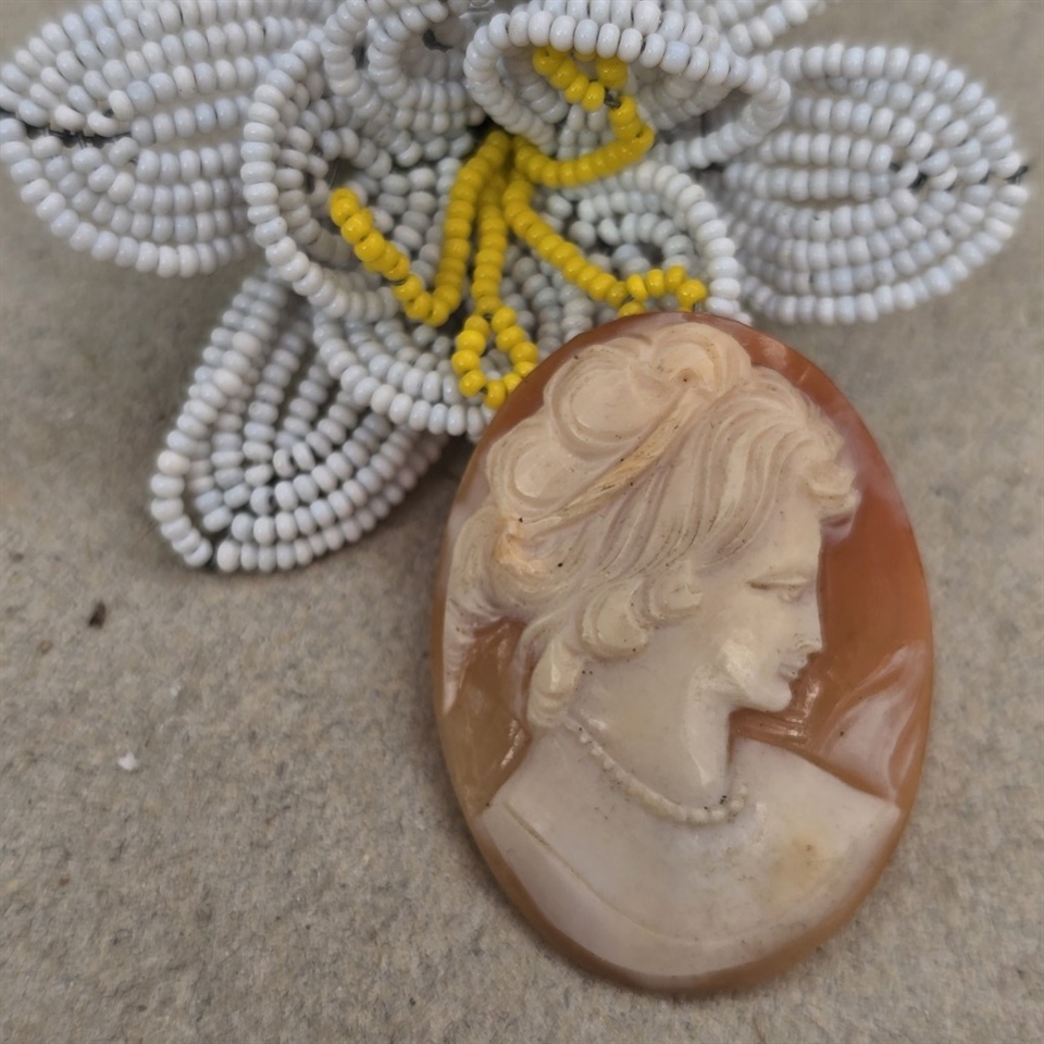 Så hvorfor ikke lade lidt historisk romantik blomstre i din smykkeskrin? Tilføj denne unikke camé til din samling i dag og bær et stykke kunst, der aldrig går af mode!