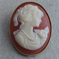 Hvert detalje i denne broche er omhyggeligt udformet for at fremhæve det fine damehoved, der er udskåret i camé-stil, kendt for sin raffinement og elegance.
