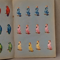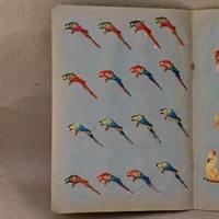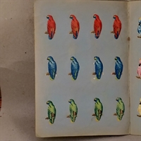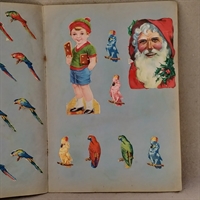 Opdag et stykke nostalgisk historie med 'Chr. IX til hest på gammelt glansbilledalbum'. Dette unikke album måler 22,5 x 31,5 cm og indeholder en fascinerende samling af vintage glansbilleder, der omfatter motiver såsom farverige papegøjer, muntre klovne, blomsterpragt og julemænd.