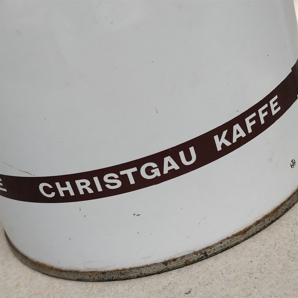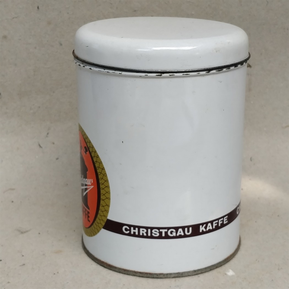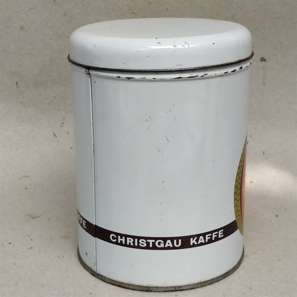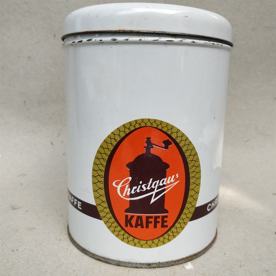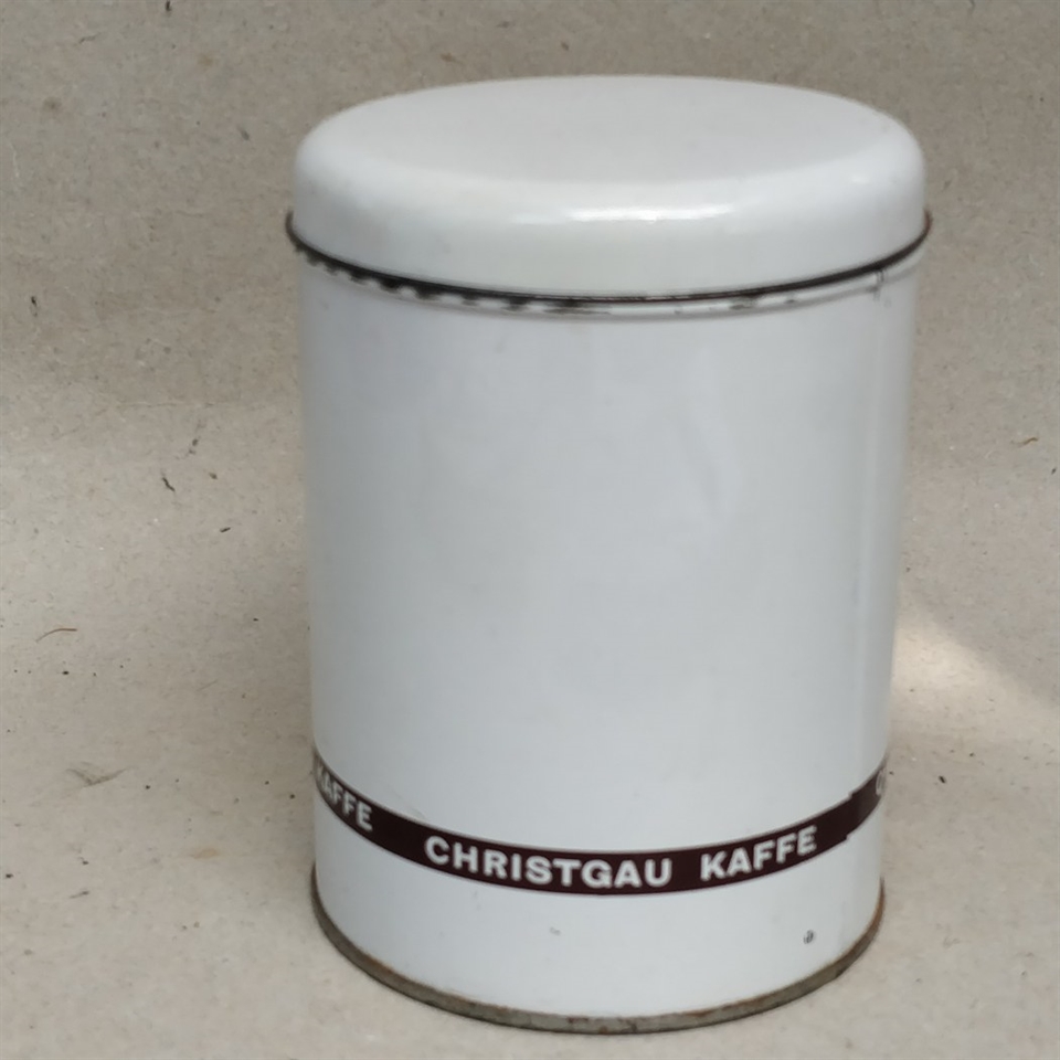 Opbevar din kaffe med stil i denne charmerende 'Christgav kaffe, hvid retro kaffedåse'.