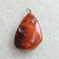 Med sin varme cognacfarve og glatte, polerede finish tilbyder dette trekantede ravvedhæng en charmerende glød, der komplementerer enhver halskædekæde.